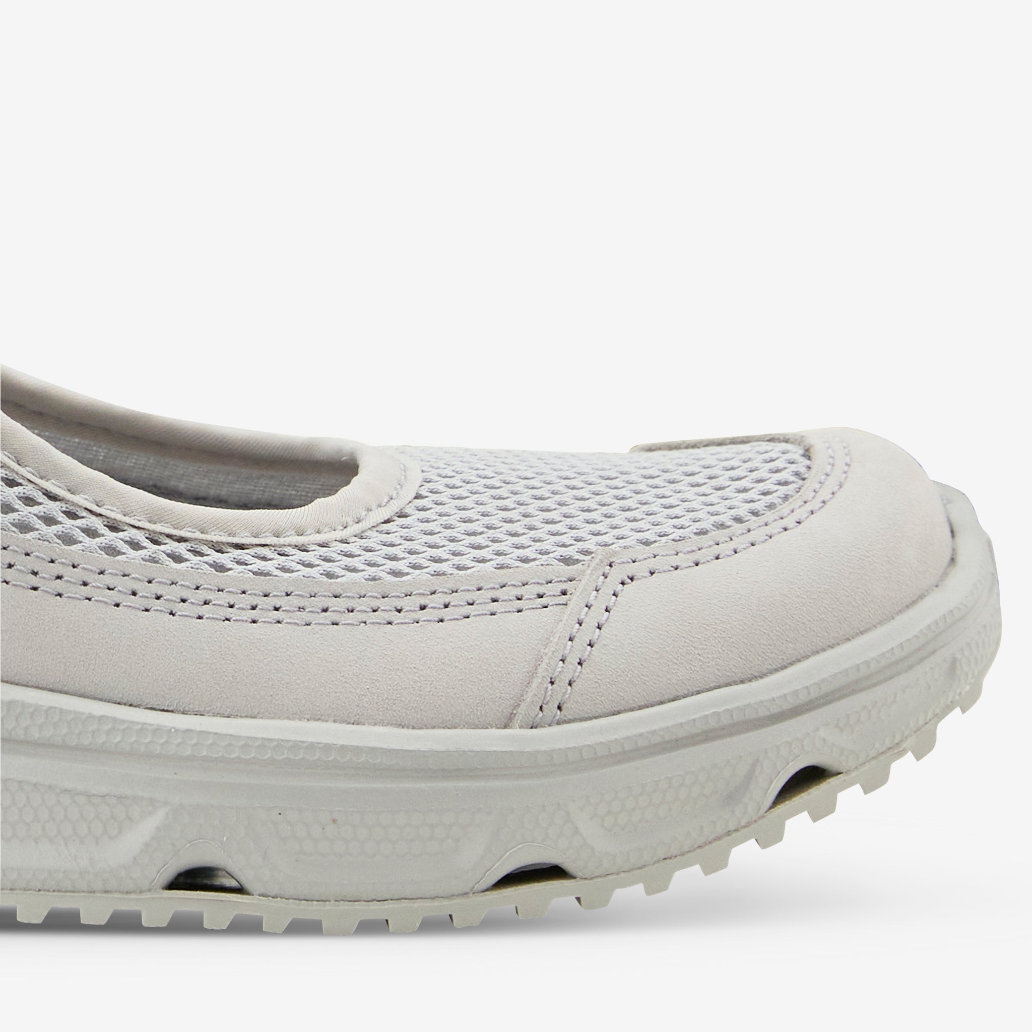 Unisex RX Marie-Jeanne in Ghost Gray from Salomon. Nubuck leather and technical 3D mesh upper for breathability and versatility. Features a lightweight EVA midsole for a lightweight feel.