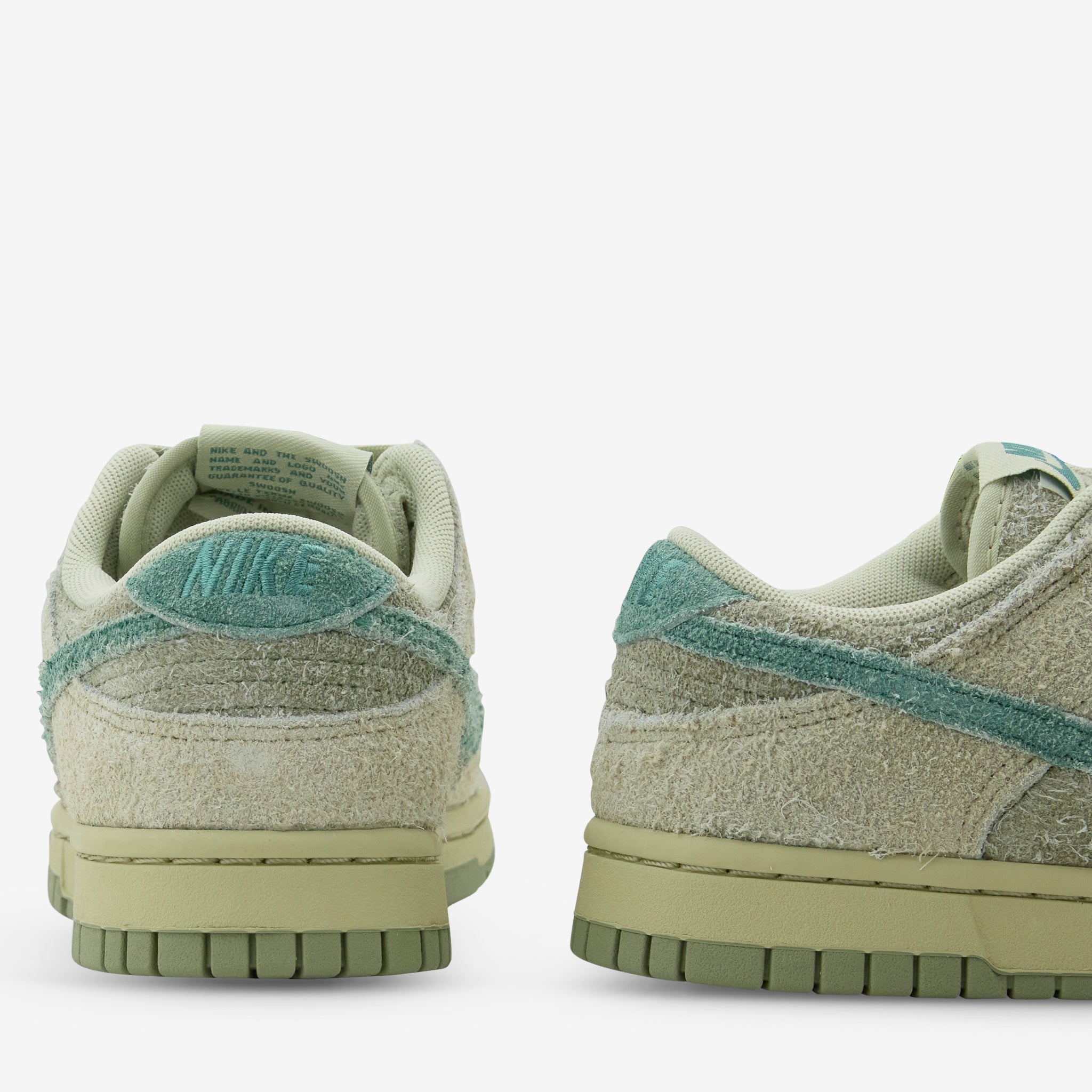 Women's Dunk Low in Olive Aura, Bicoastal and Oil Green from Nike. Channel vintage style with a padded low-cut collar and a shaggy suede upper which softens with wear. Features a foam midsole for lightweight cushioning and a rubber outsole with a classic pivot circle for durable traction.