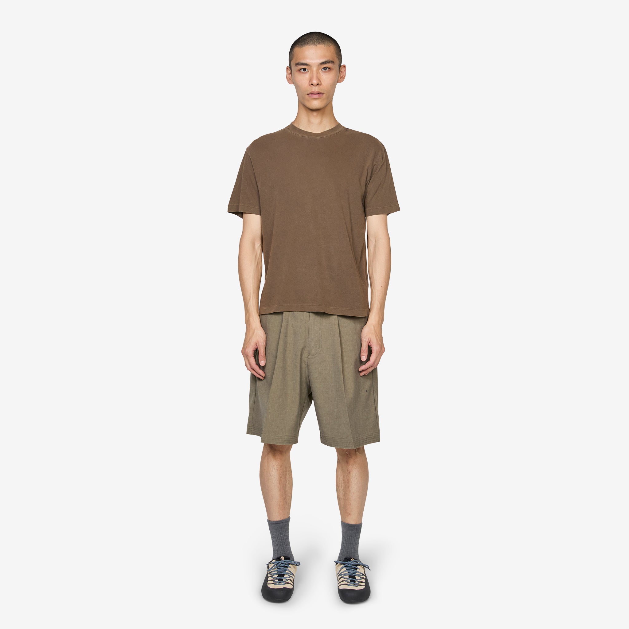 Above The Clouds collaborates with Beach Brains on the Cut Short in an exclusive Grey Pinstripe colourway. Relaxed fit, wide leg shorts featuring a belt loop waistband with a hidden hook and eye waist closure, removable self-material cinch belt, 4-pocket construction and front pleat details. Crafted from soft suiting fabric and finished with raw hem detailing and collaborative branding. Exclusive to Above The Clouds.