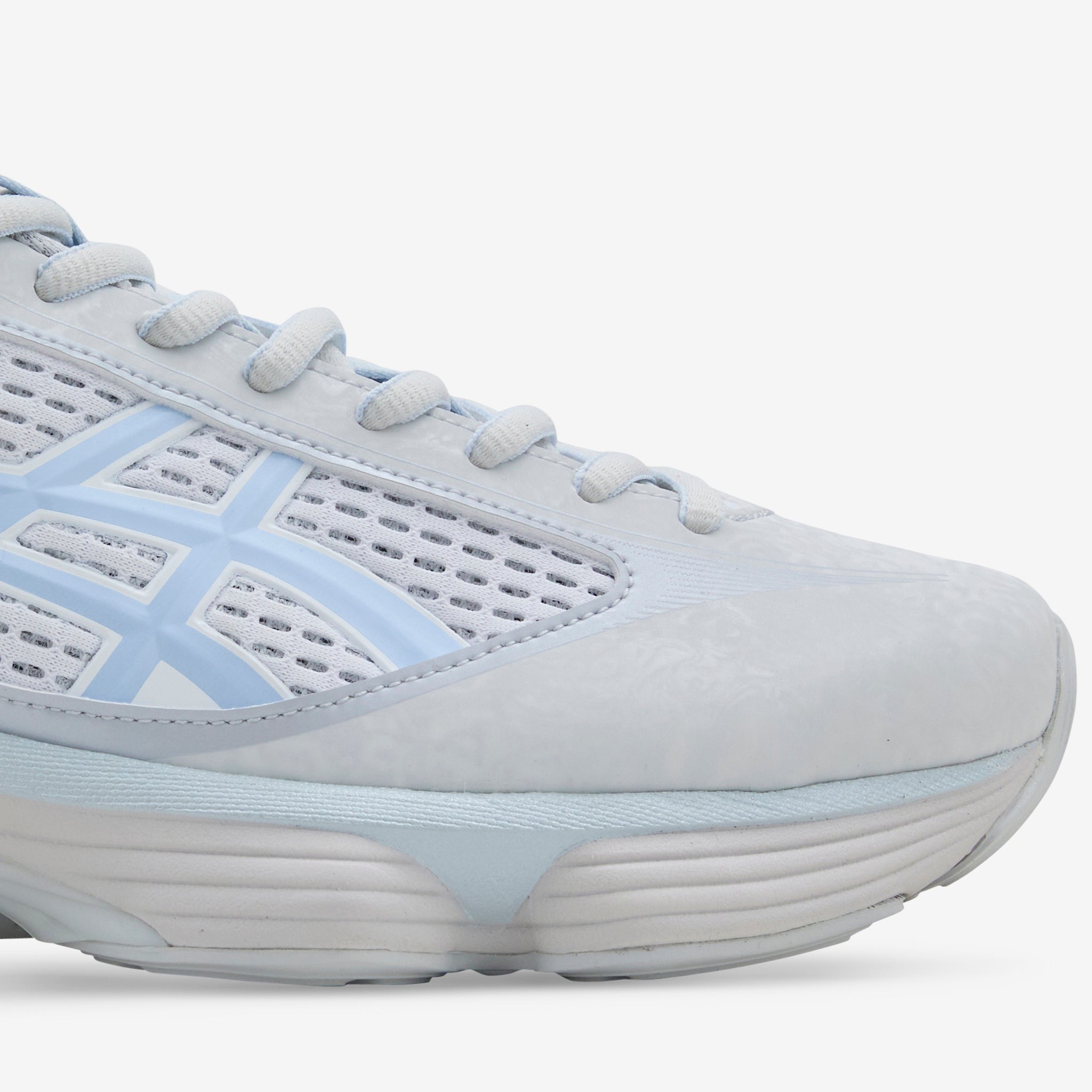 Men's US6-S Gel-Kinetic Fluent in Glacier Grey and Soft Sky from Asics Sportstyle. This silhouette's upper construction features technical welding and eyelet elements that are complemented with a unique two-tone mesh and gradation spray applications. These details are influenced by the visual artist, Edith Dekynd, blending contemporary materials that add both depth and texture to the design. Midsole features FF BLAST™ PLUS ECO and Scutoid GEL™ technology for advanced cushioning and shock absorption. Finished with a TRUSSTIC™ support system and custom outsole for everyday support.