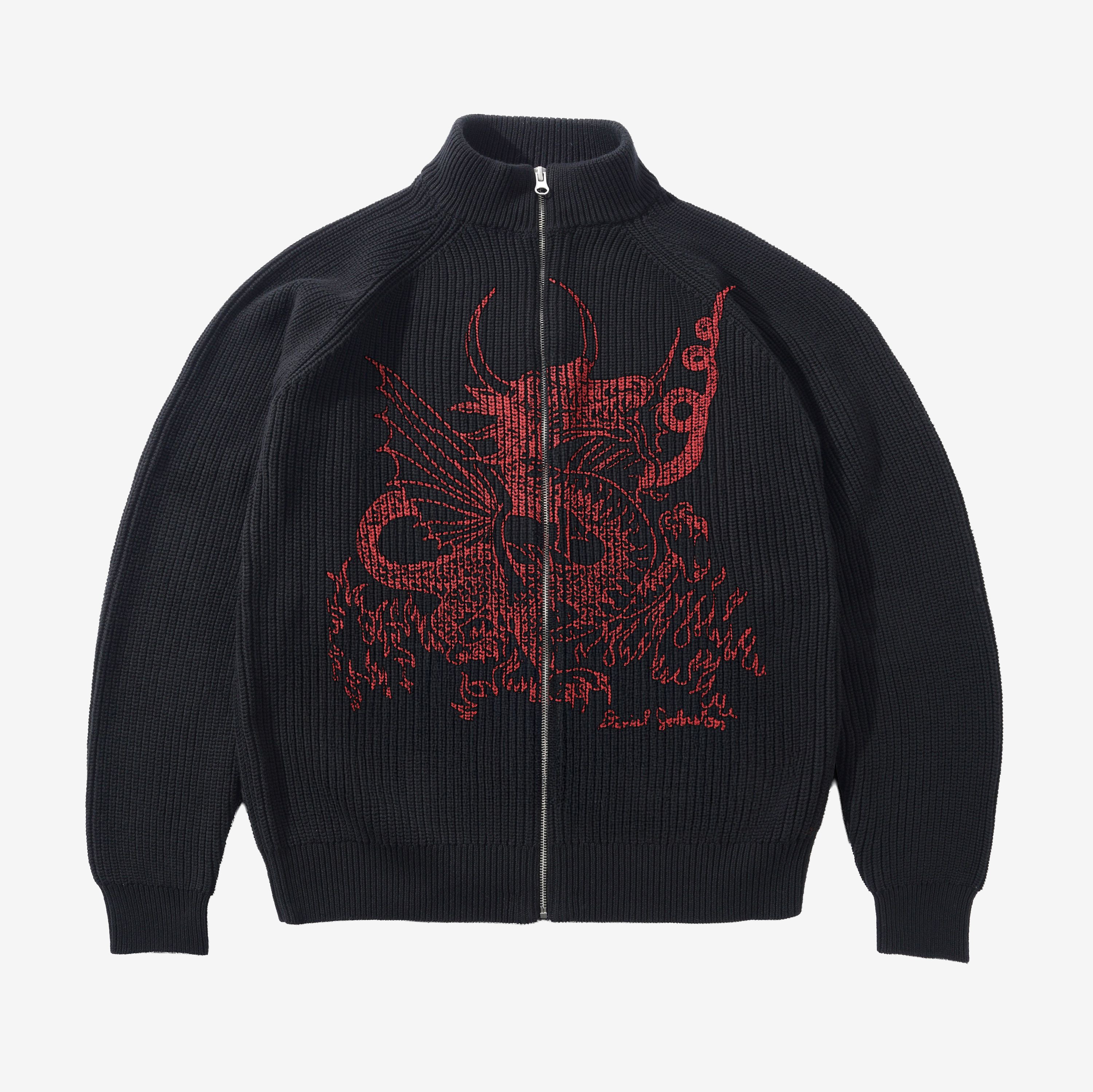 Daniel Johnston Dragon Knit Zip-Thru Sweater Black | Red