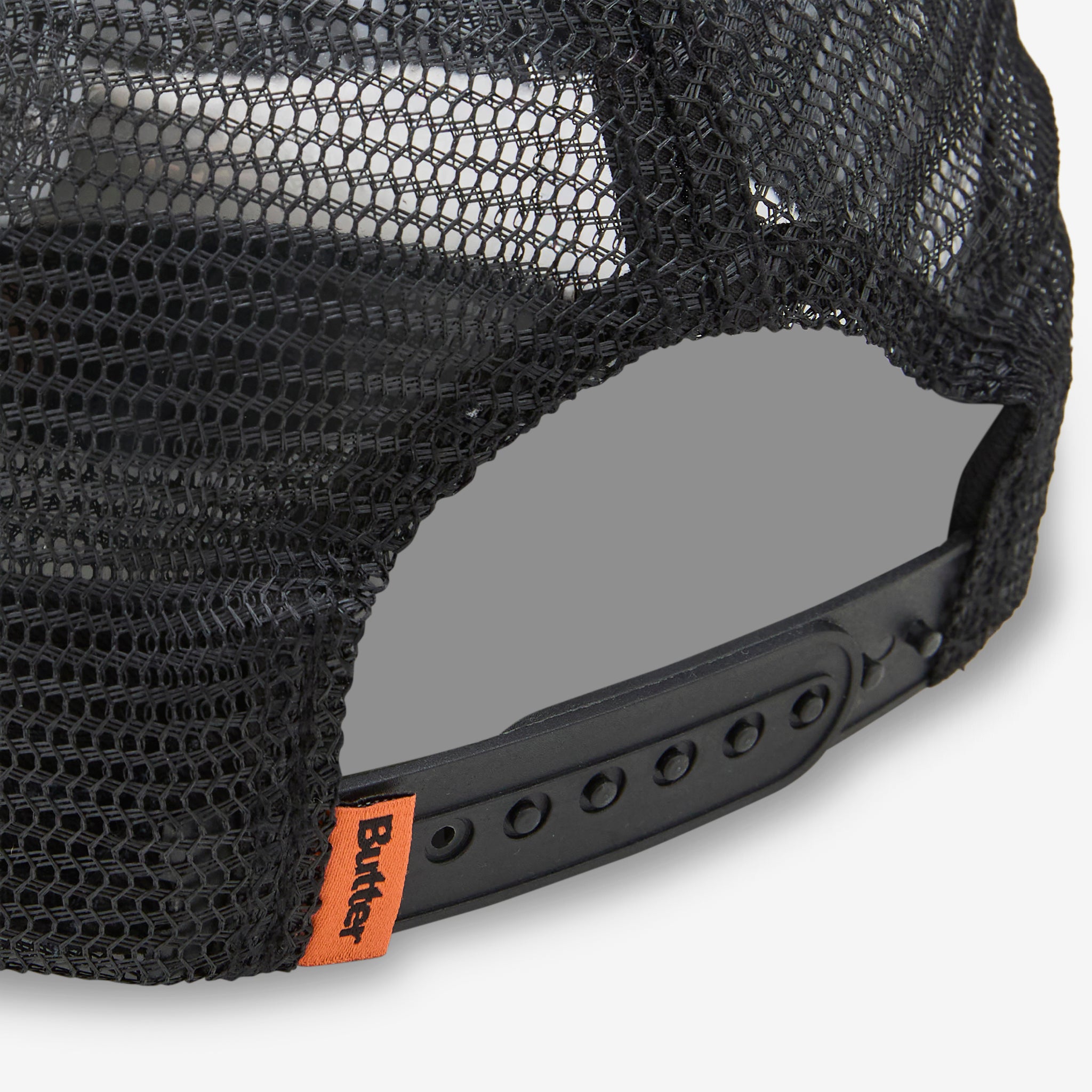 Pay Up Trucker Cap in Lowland Camo from Butter Goods. Trucker style cap crafted from cotton with a mineral wash finish, contrast stitching and rear lightweight mesh panelling. Features embroidered branding on the front, a self-fabric strap, and metal buckle closure at the back.