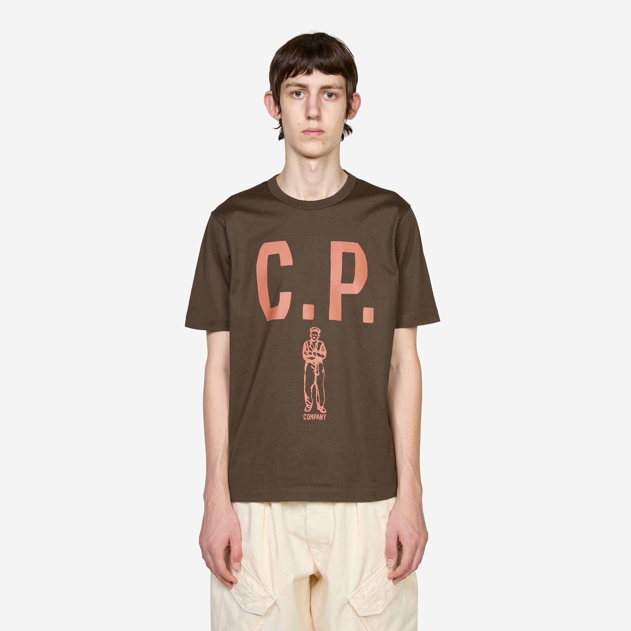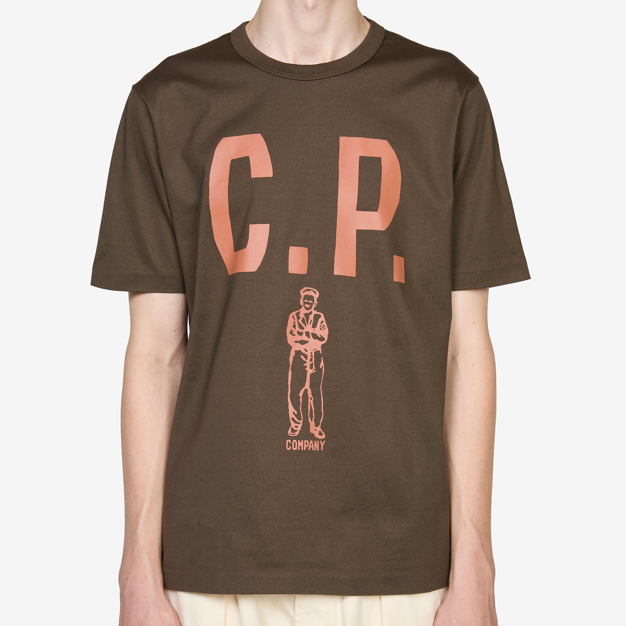 Mercerized 30/2 Jersey Twisted Logo T-Shirt in Ivy Green from C.P. Company. Regular fit t-shirt with a ribbed crew neckline. Crafted from a 30/2 twisted jersey cotton which is finished with a mercerisation process that adds a shinier appearance to the fabric. Finished with a printed graphic across the front.
