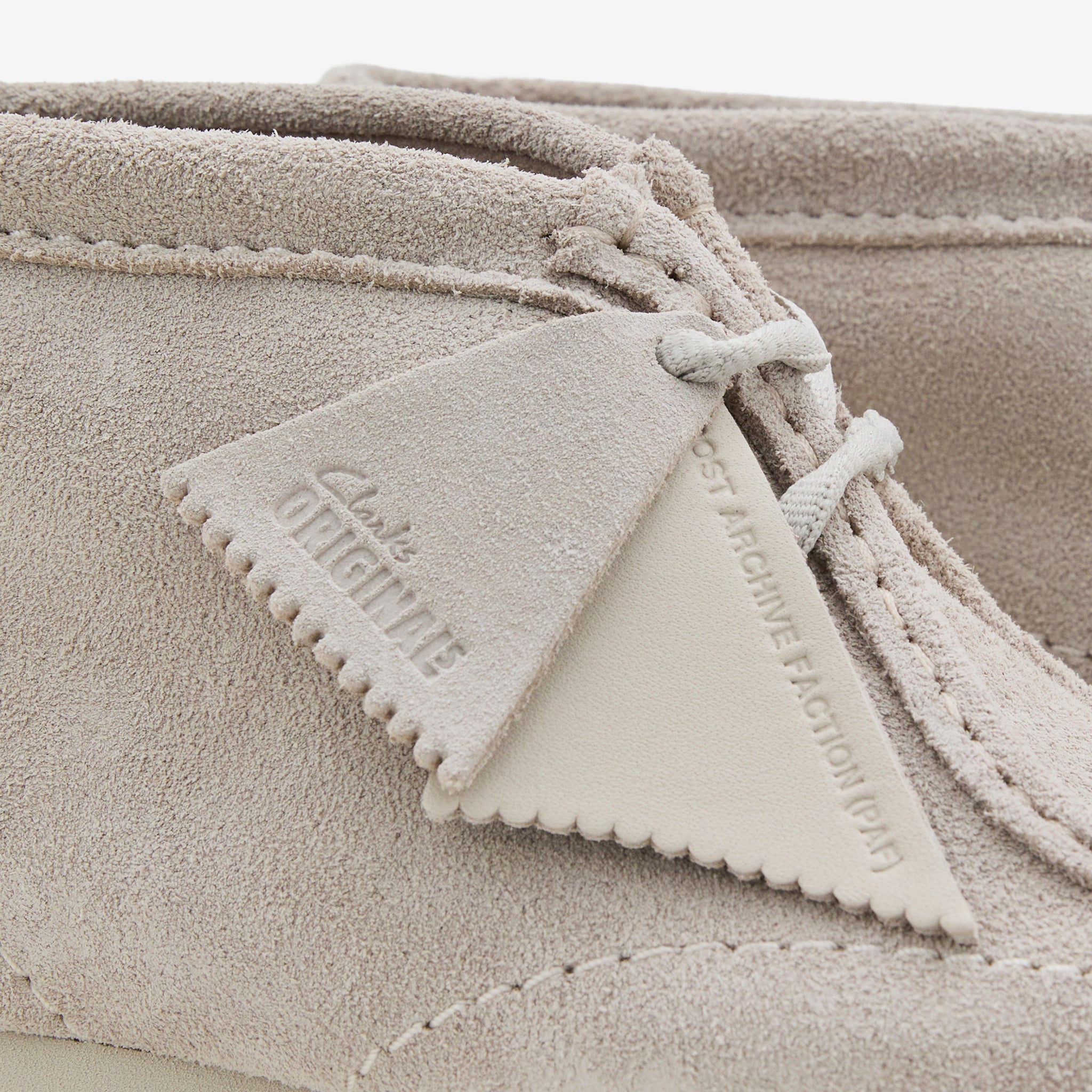 Post Archive Faction (PAF) collaborates with Clarks on the WallabeeBT in Beige Suede. Constructed with premium suede. Featuring Vibram sole and hiking outsole. Finished with asymmetric PAF stitching detail.