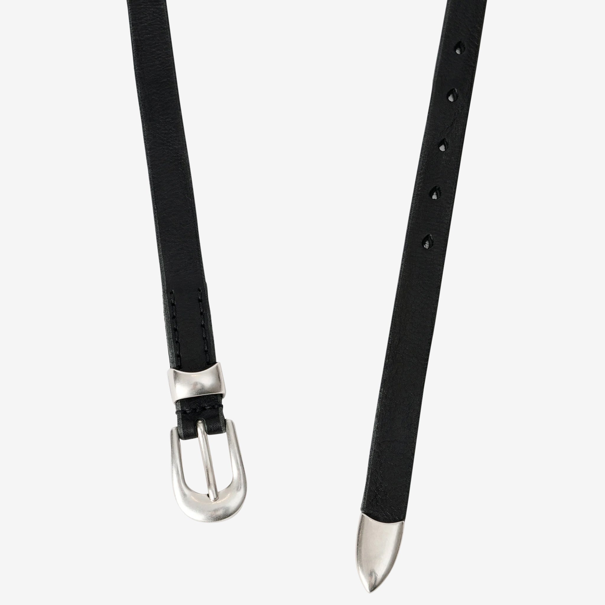2cm Belt in Black Leather from Our Legacy. Classic belt crafted from Italian leather with a metal pin buckle closure, keeper and tip and a dust bag cover.