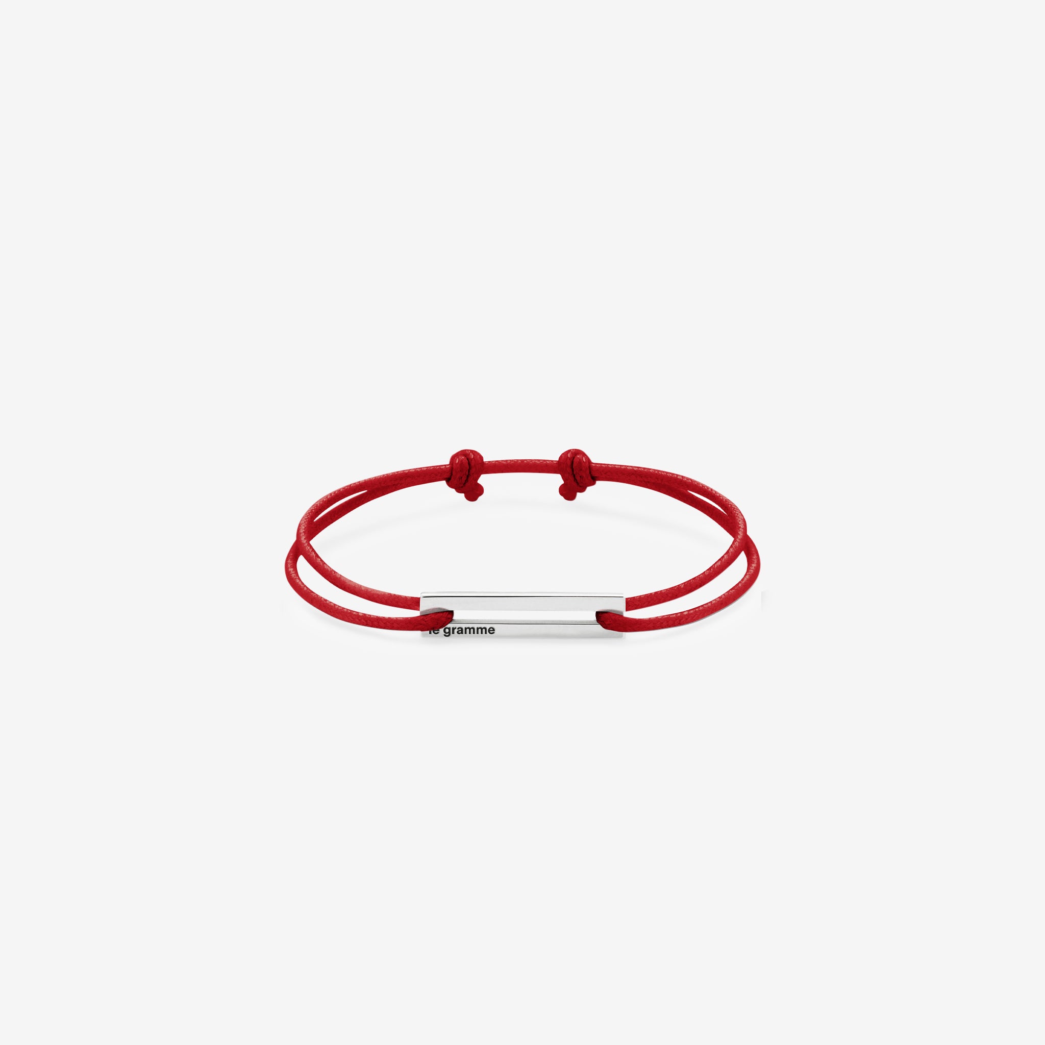 1.7g Polished Sterling Silver & Red Polyester Cord Bracelet from Le Gramme. Slick polished 925 silver finished with Le Gramme hallmarking and logo on a polyester cord band.