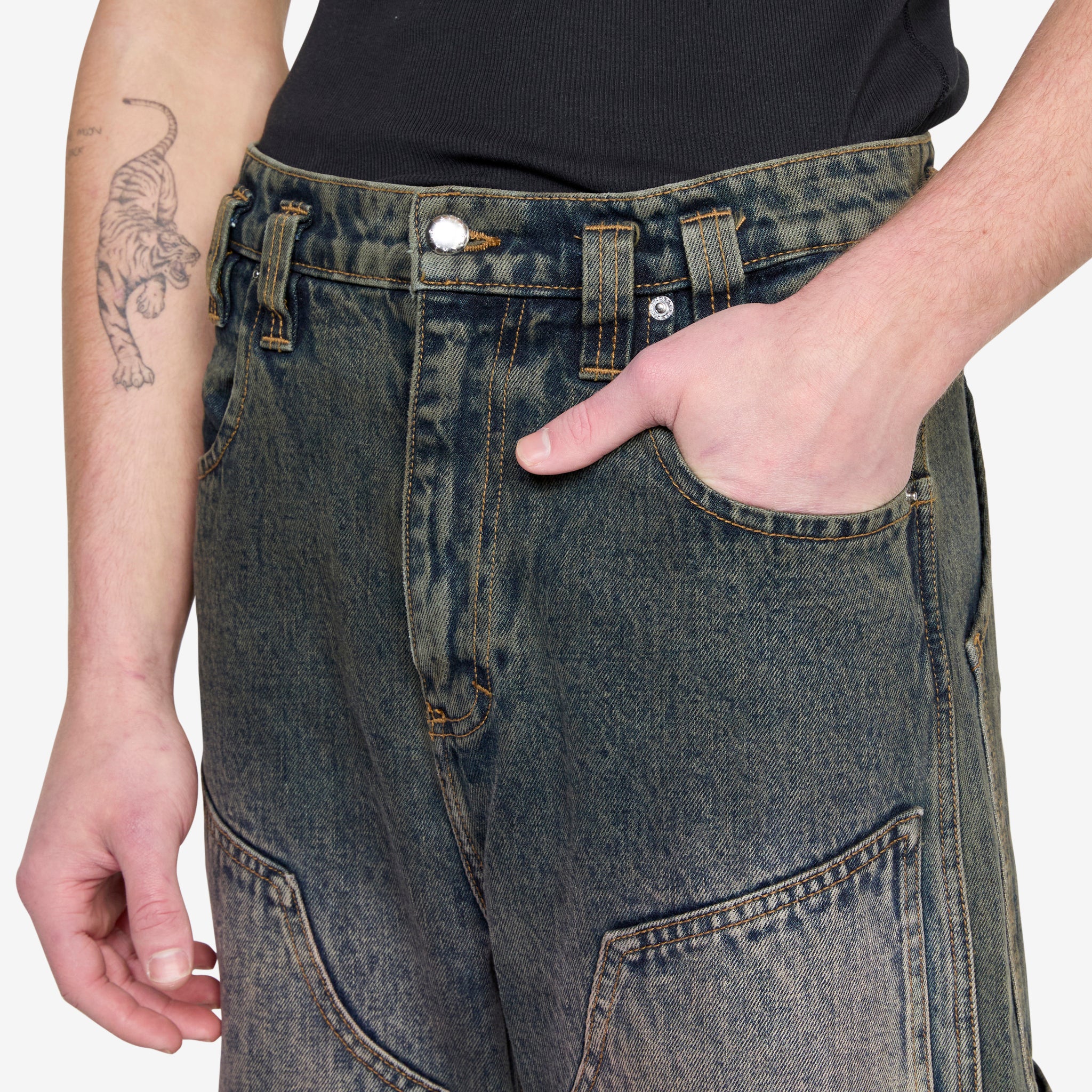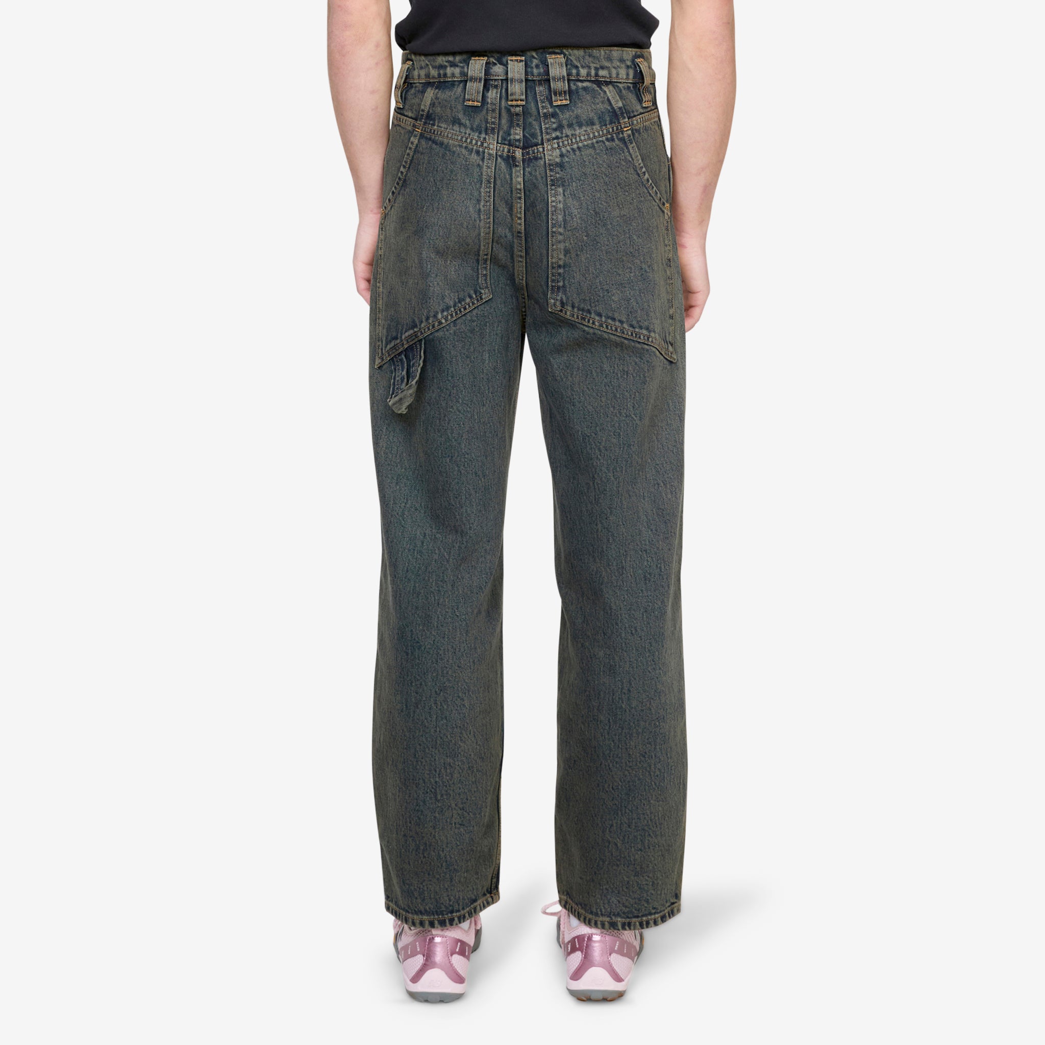 Double Knee Baggy Jean in Moon Rock from Eckhaus Latta. Made from durable Cotton denim with a washed grey finish and reinforced double knee panels. Features a relaxed, baggy fit with classic five-pocket styling and a zip fly with button closure.