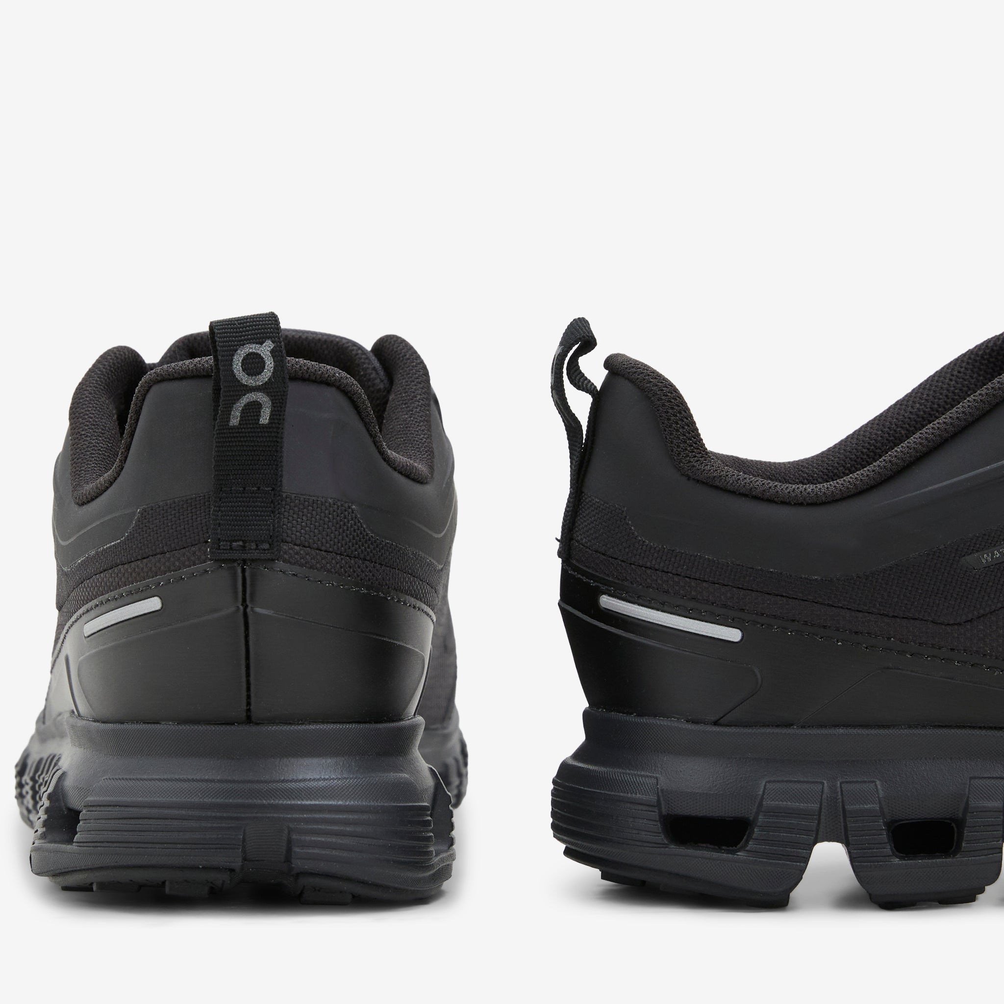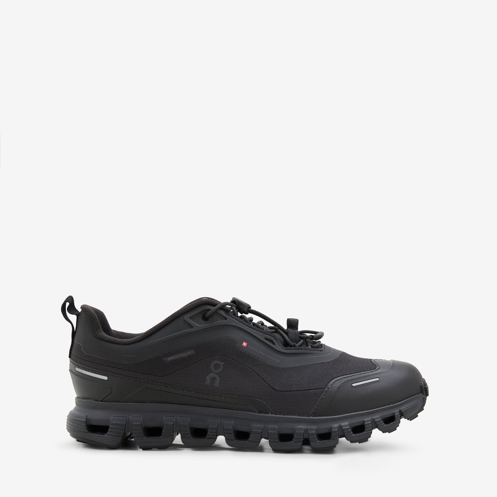 Women's Cloud 6 Geo Waterproof in Black from On. Layered fully waterproof upper features a protective ballistic nylon mudguard and toe cap with toggle lace closure. CloudTec®, Zero-Gravity foam and Speedboard® engineering combine for all day performance and support. Finished with a Missiongrip™ outsole for superior traction.