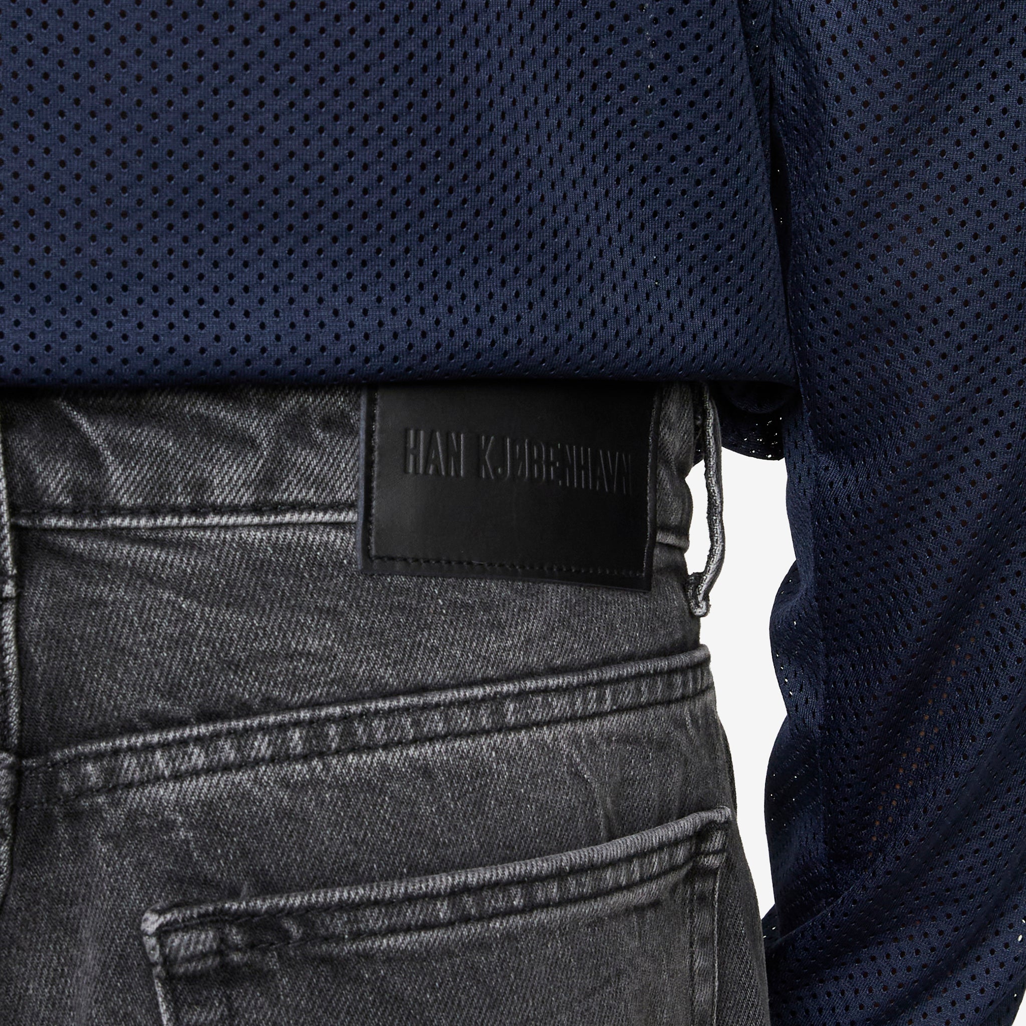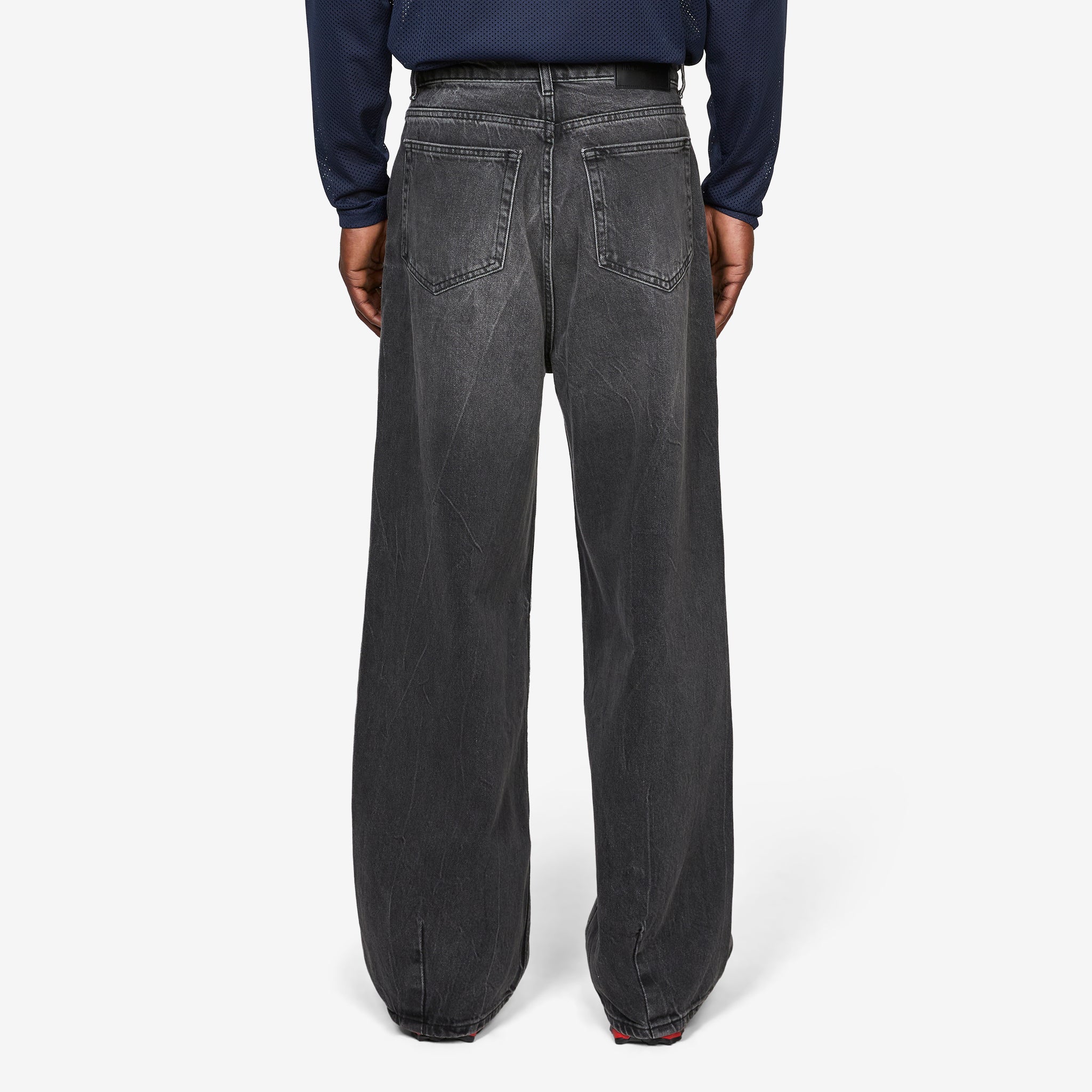Baggy Denim Jeans in Black Vein from Han Kjøbenhavn. Loose fit jeans with a belt-loop waistband, 5-pocket construction and custom-branded silver-tone hardware. Crafted from a partially recycled washed cotton in a unique veined design. Finished with a branded leather jacron at the rear waistband.