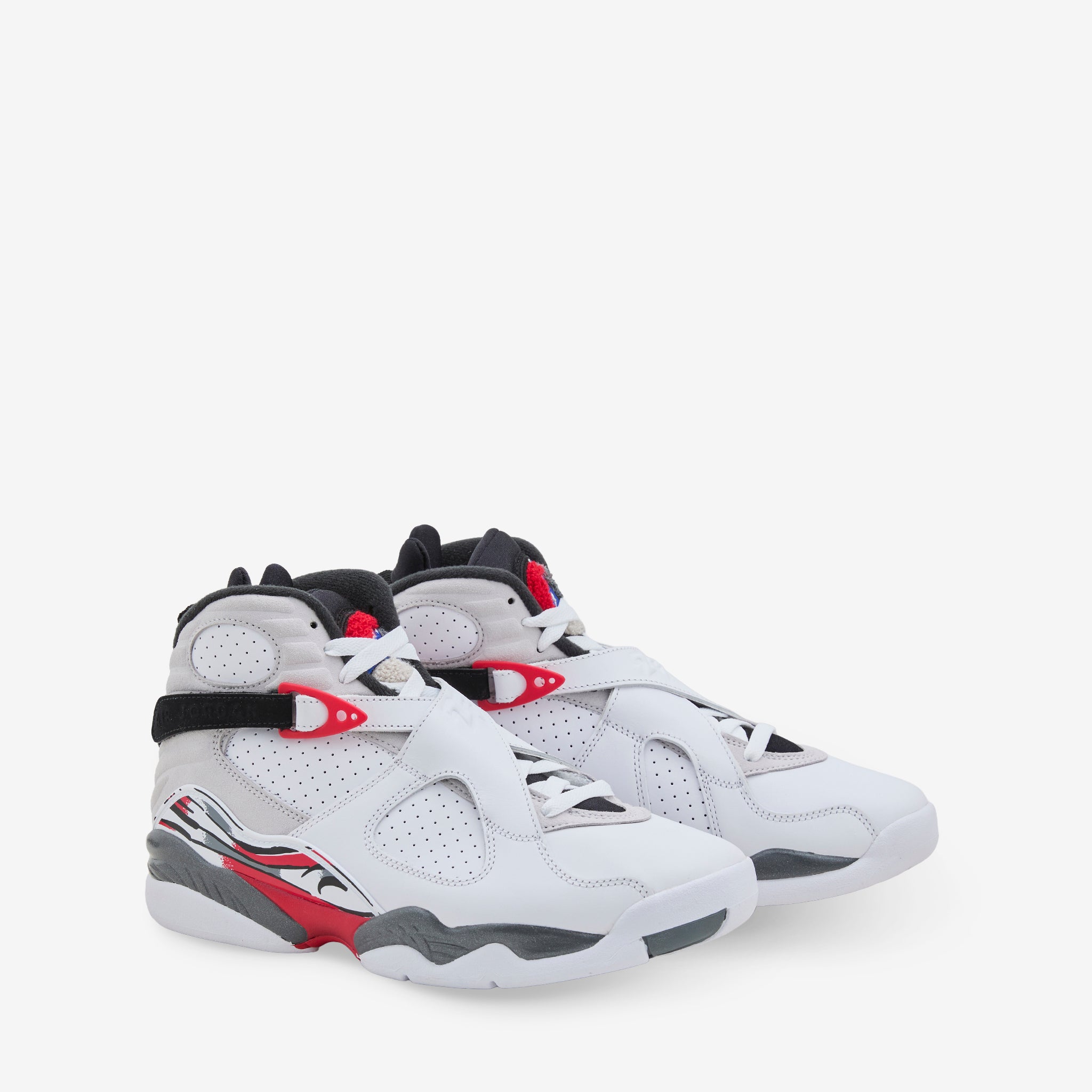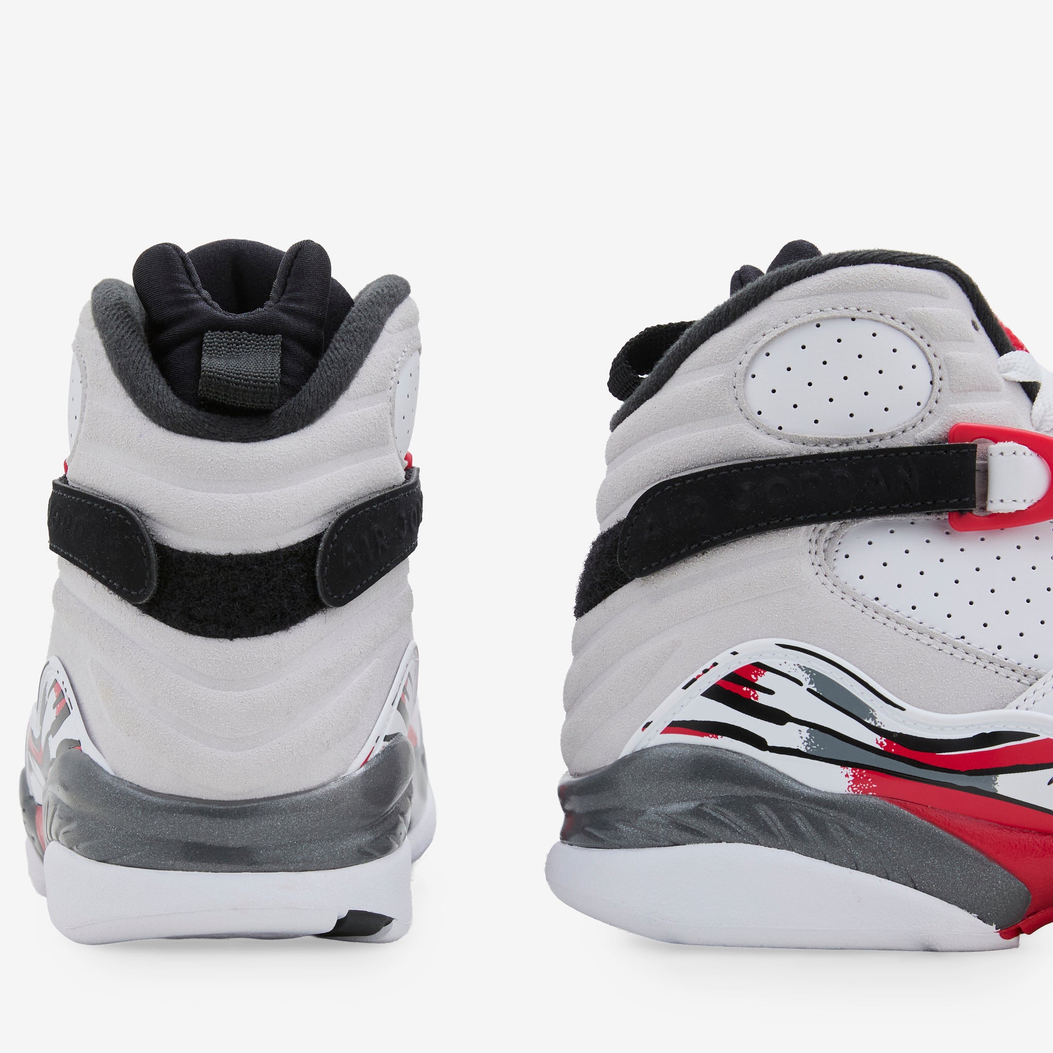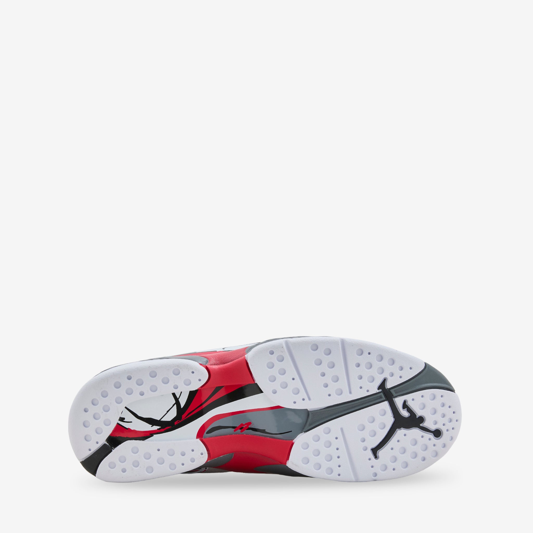 Men's Air Jordan 8 Retro 'Bugs Bunny' in White, Black and True Red from Jordan Brand. Originally released in '92-'93, and famously worn in cartoon version by Bugs Bunny, this AJ8 features a 90's style white leather upper with tonal grey suede accents and moulded construction details. Signature Jordan cushioning and rubber outsole provides traction and support. Finished with forefoot straps and 'Bugs Bunny' tongue details.