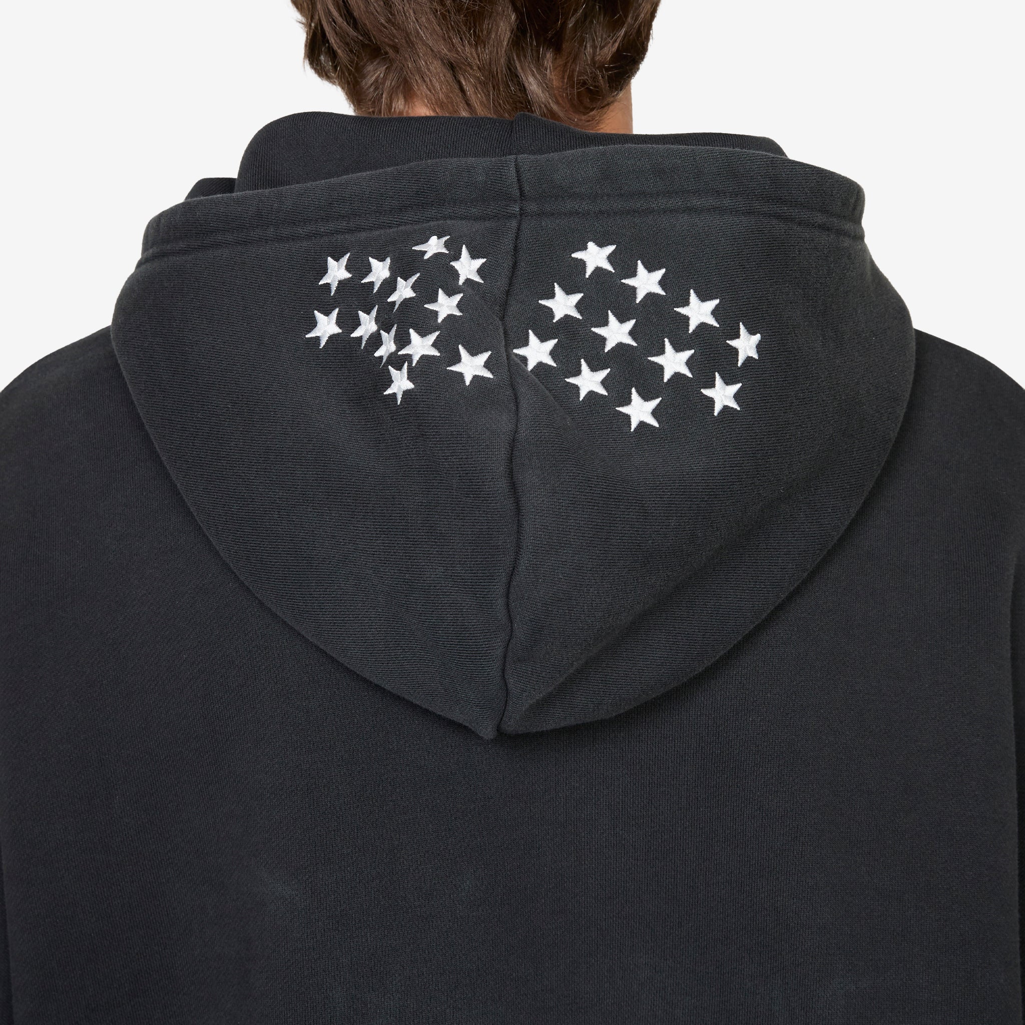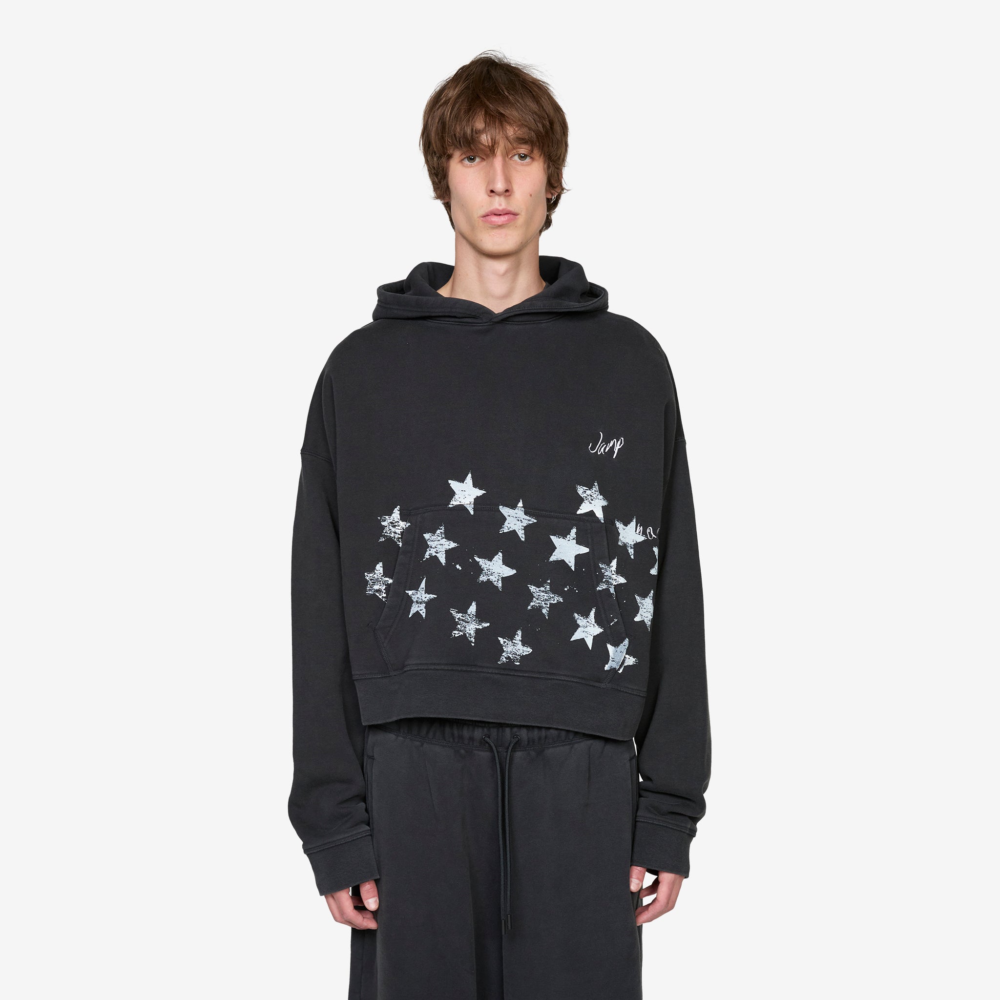 Crop Hoodie in Black | Ivory from Jordan Brand. Oversized and cropped fit hoodie with ribbed cuffs and hem. Crafted from cotton fleece for structure and warmth. Finished with printed star graphics and embroidered detailing at the hood.