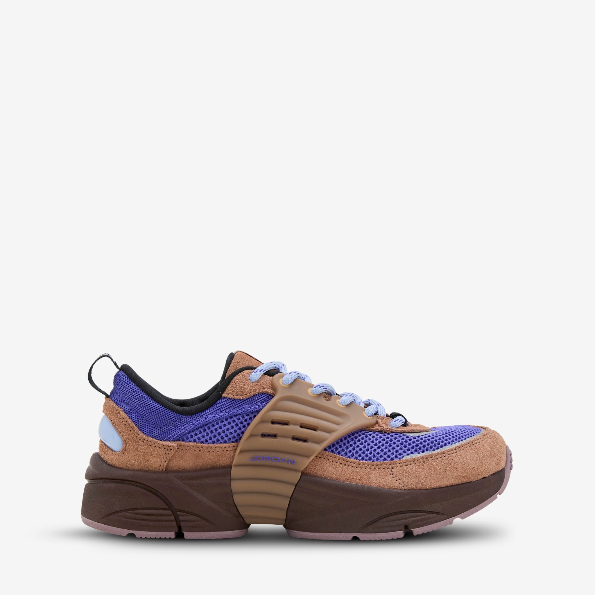 Jordan Trunner O/S SP in Archaeo Brown, Persian Violet and Earth from Jordan Brand. A modern take on the original Jordan Trunner featuring a breathable mesh upper with suede overlays and moulded plastic support wings. Plush tongue and collar provide padded comfort while the responsive underfoot foam delivers a soft step. Finished with a rubber outsole for durable traction.