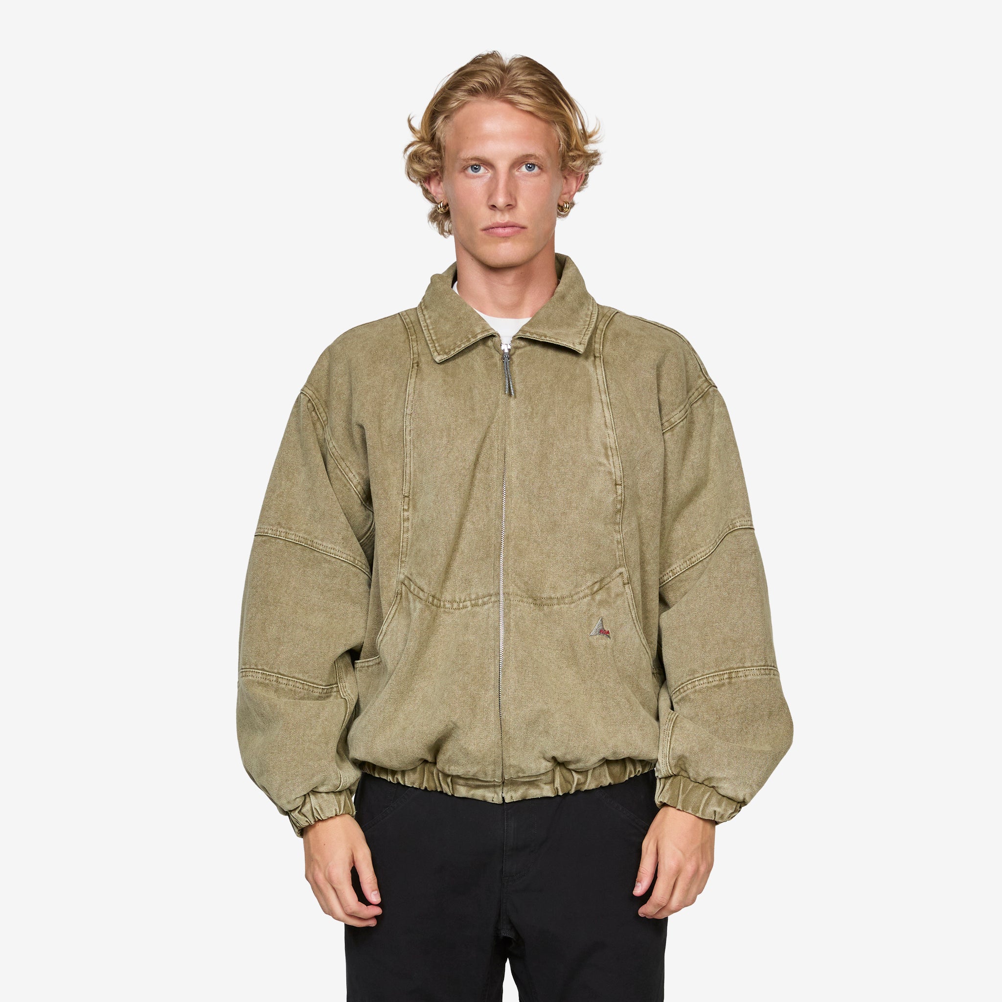Ash Canvas Jacket in Sage Green from ROA. Relaxed fit jacket with a classic collar, concealed full-zip closure, two roomy front pockets and an elasticated hem and cuffs. Crafted from a durable washed cotton canvas with panelling and topstitch details throughout details throughout. Finished with embroidered branding on the front pocket.