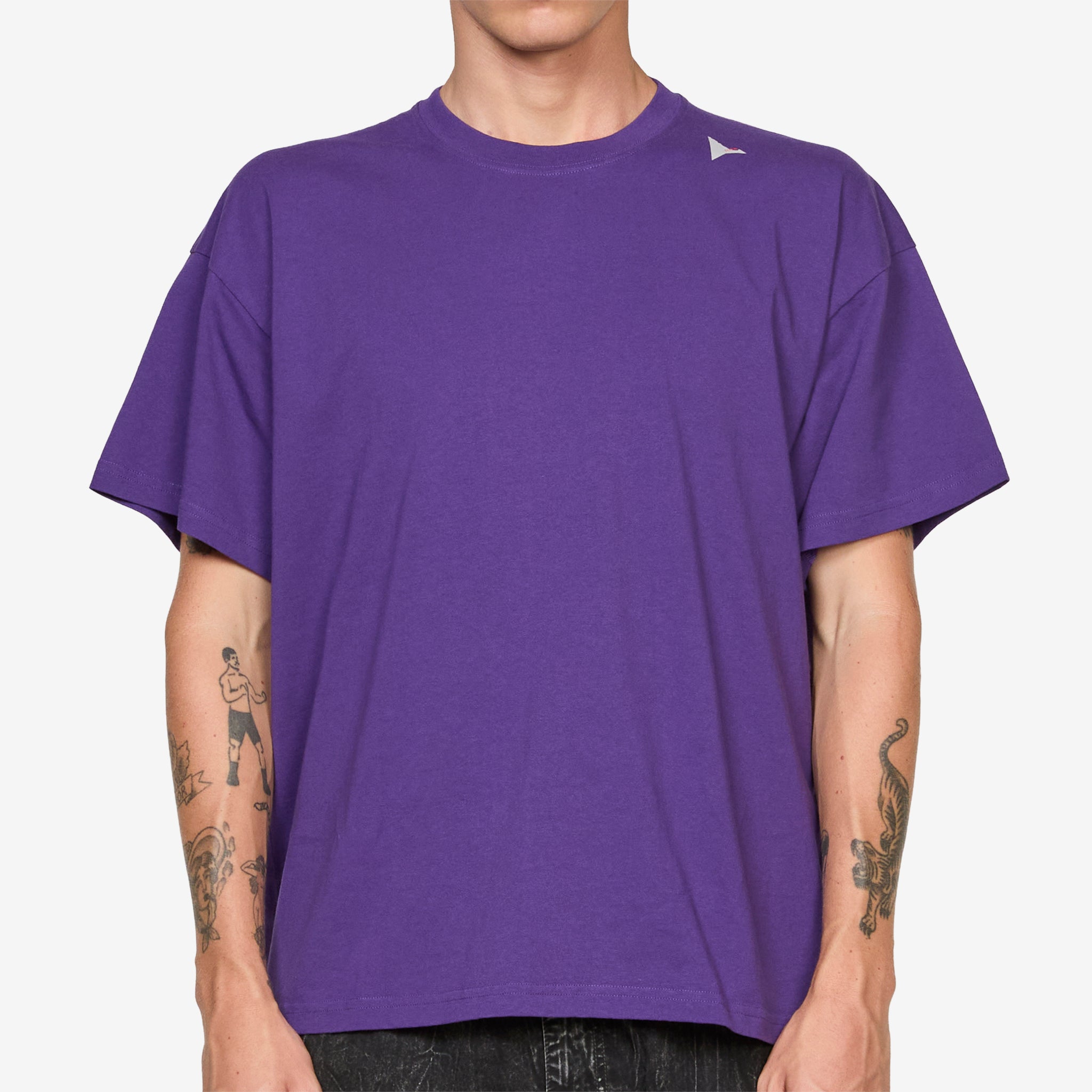 Logo T-Shirt in Purple from ROA. Relaxed fit t-shirt with a ribbed crew neckline. Crafted from a soft organic cotton jersey and finished with a subtle printed logo on the left shoulder.