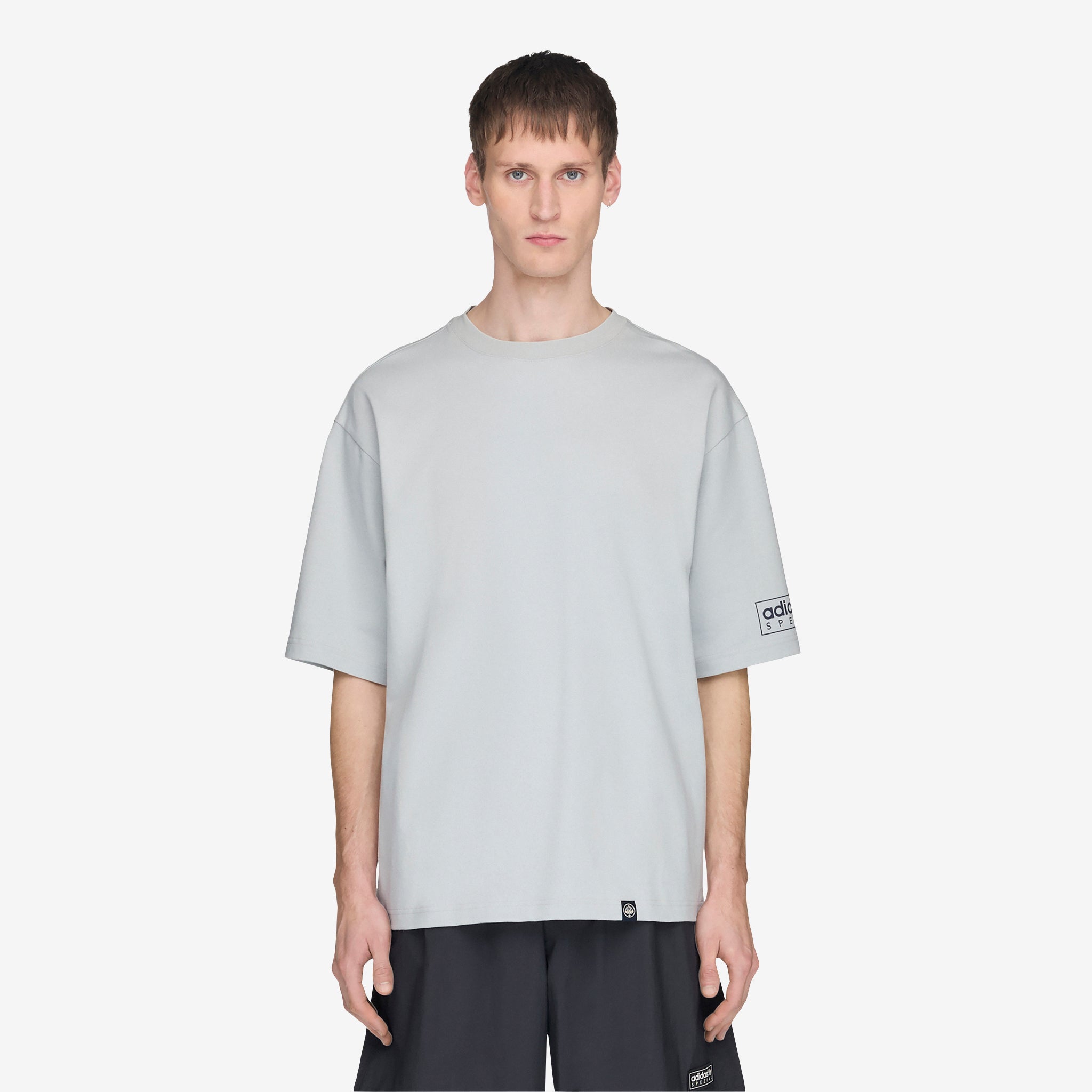 SPZL Mod T-Shirt in Wonder Silver from adidas Originals. Relaxed fit t-shirt featuring a ribbed crew neck and dropped shoulders. Crafted from a soft single-jersey cotton for comfort. Finished with signature SPZL branding across the back, left arm and with small stitched label at the hem.