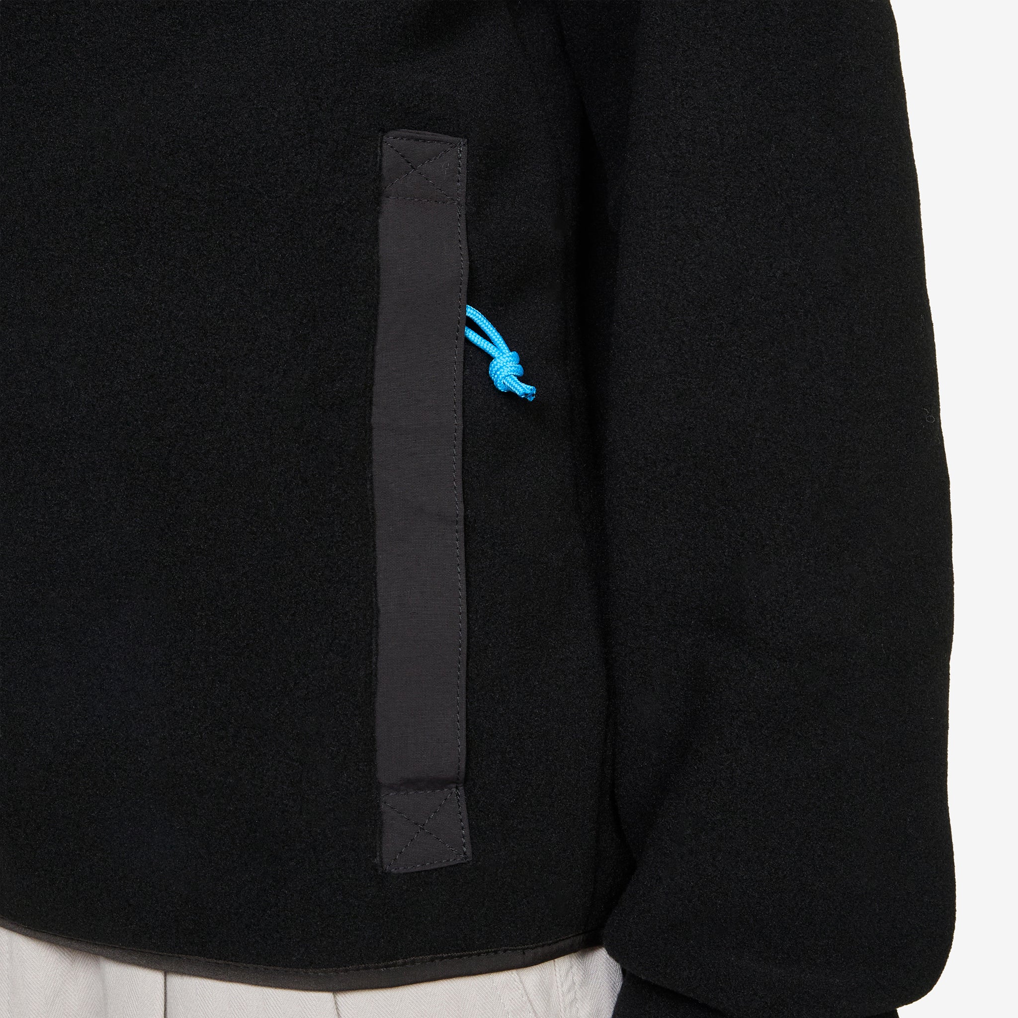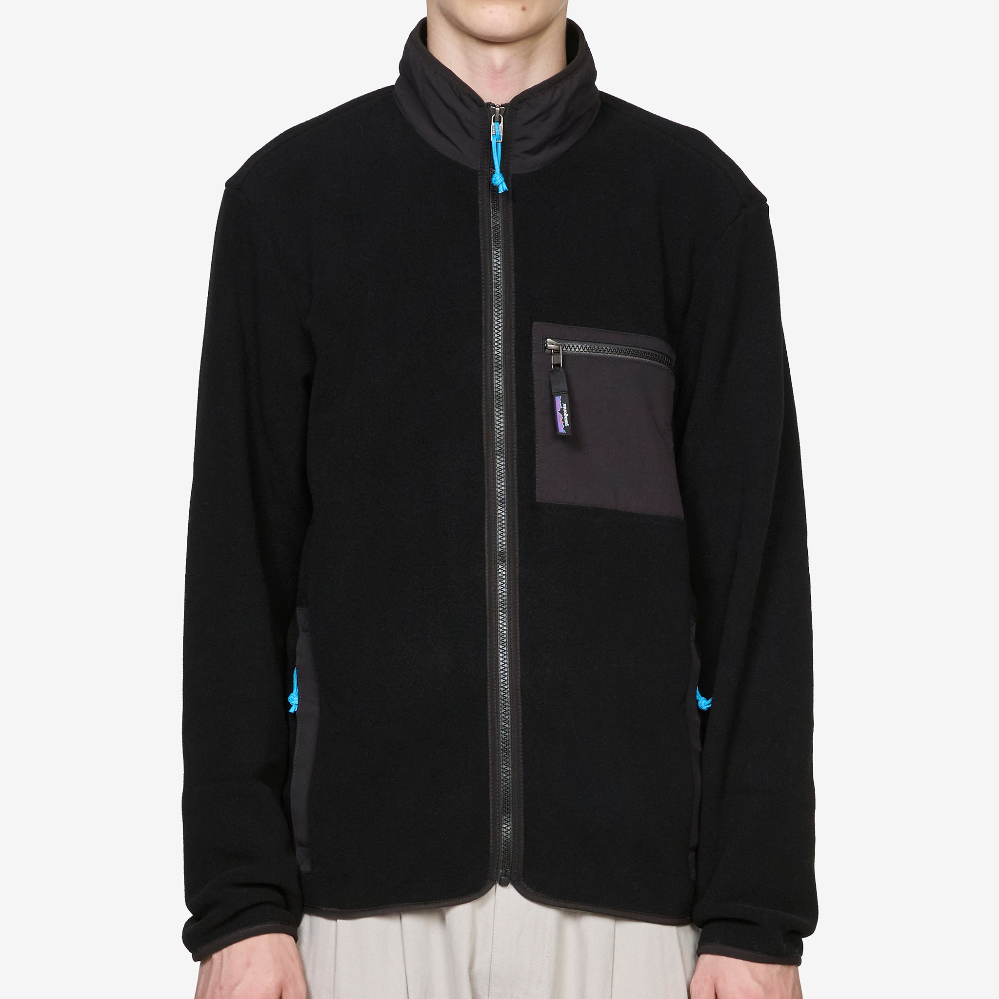 Synchilla® Fleece Jacket in Black Solid from Patagonia. Regular fit full zip fleece jacket with a stand-up collar, set-in sleeves and trimmed with abrasion-resistant nylon binding. Crafted from midweight Synchilla® 100% recycled polyester double-sided fleece and Fair Trade Certified™ sewn. Finished with zip-closure chest patch pocket and two welted front pockets.