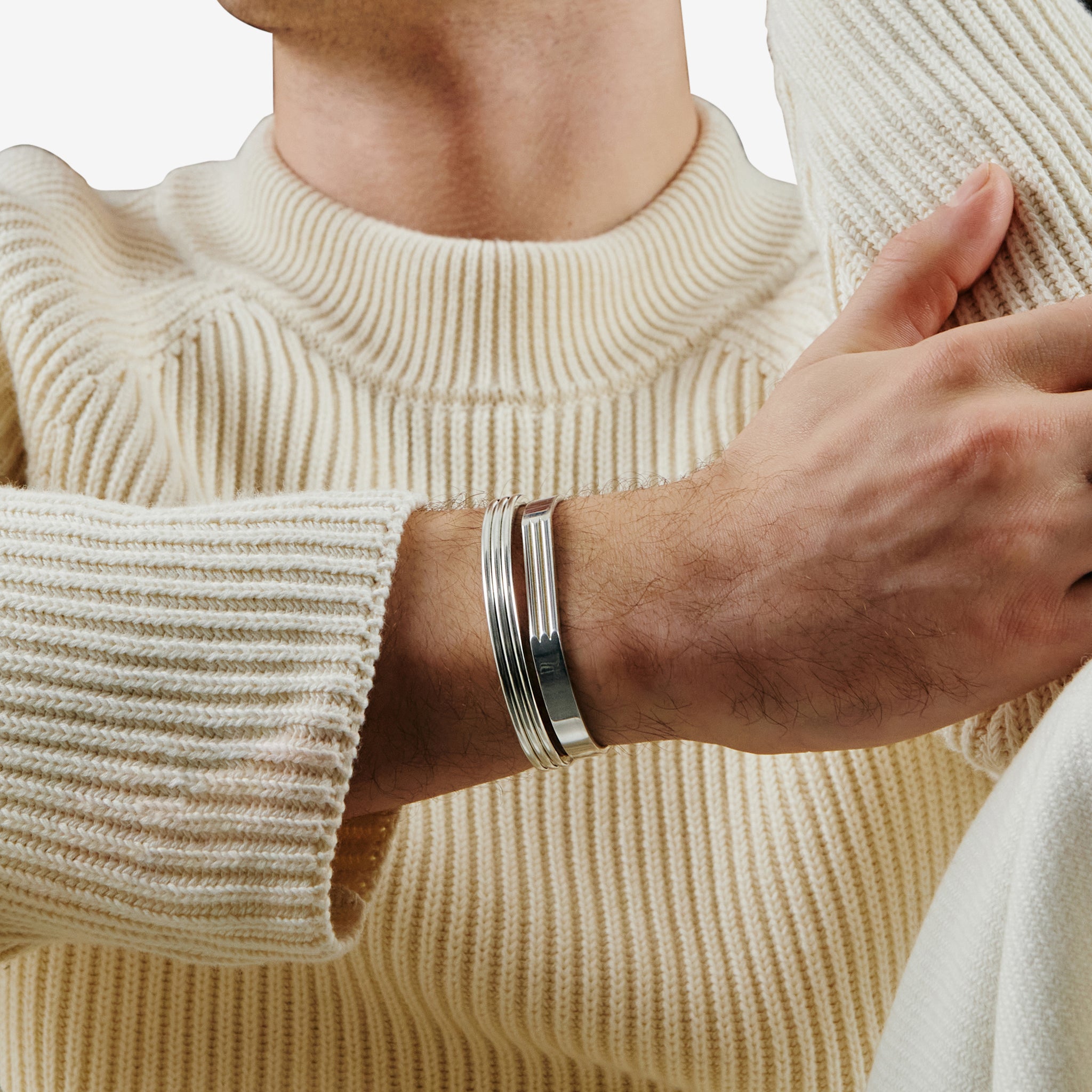 30g Polished Sterling Silver Godron Bracelet from Le Gramme. 100% Sterling Silver bracelet with Godron-finished face. Open cuff.