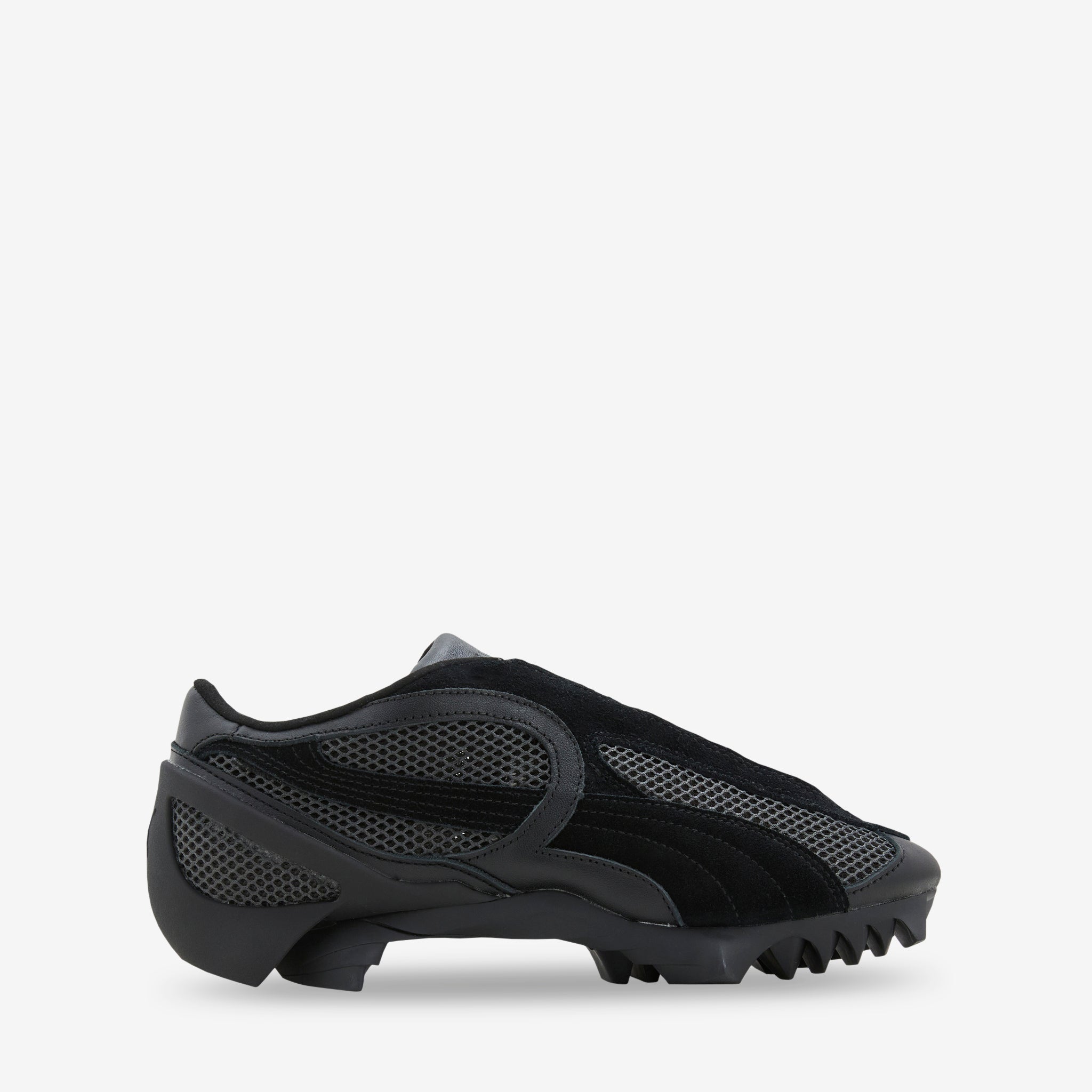Unisex Beisser in PUMA Black from Puma. Back from the 2000's, and named after the German term for 'biter', this silhouette features a layered mesh upper with premium tonal suede and leather overlays. Distinct lugged outsole provides support, traction and a unique silhouette. Finished with tonal branding.