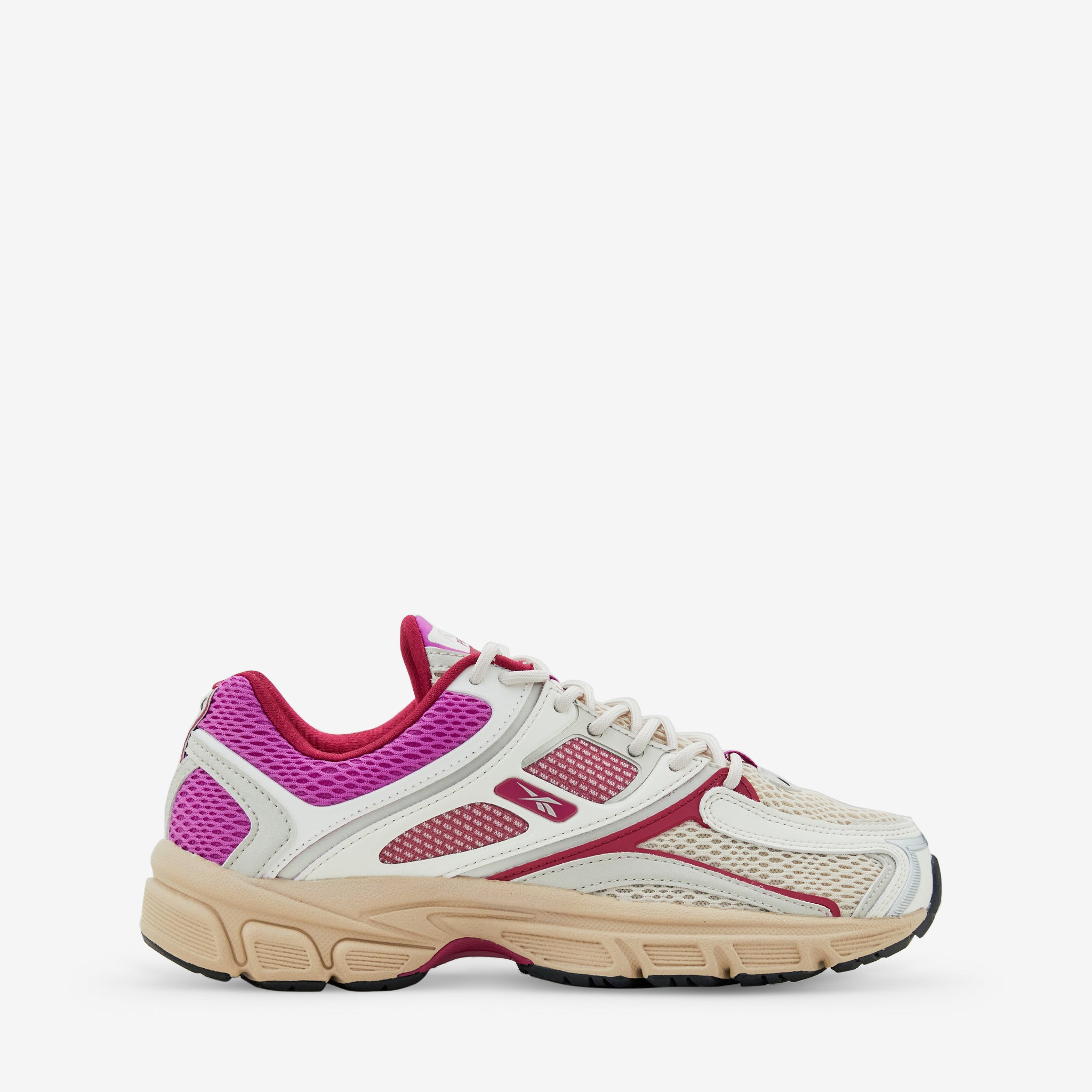 Men’s RBK Premier Trinity KFS in Chalk, Sand and Purple Rave from Reebok. Running-inspired shoes with a layered mesh and suede upper. Features a Kinetic Fit System and TPU shank plate for added support and a rubber outsole for traction.