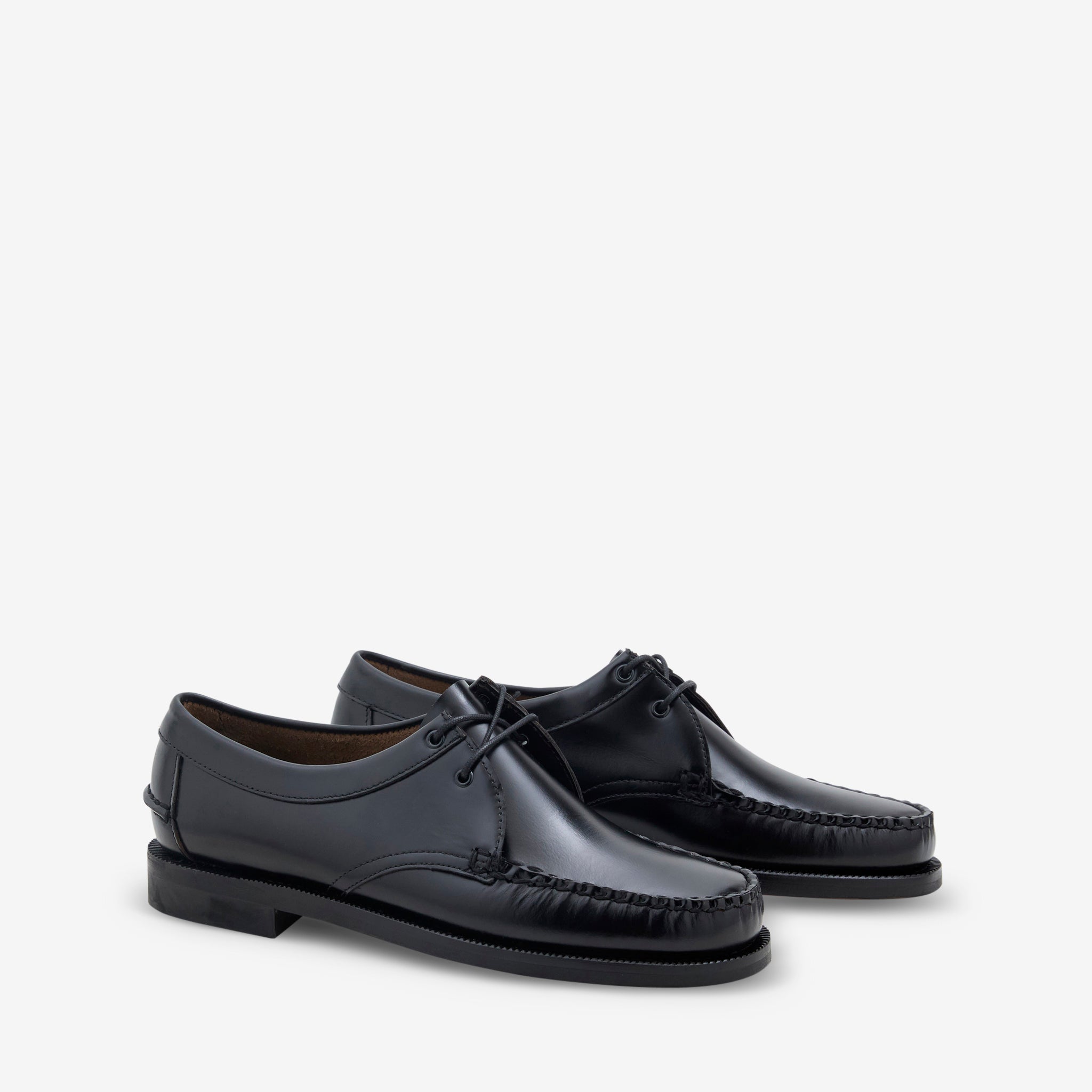 Men's James Loafer in Black from Sebago. Hand-sewn dress loafers with a two-eyelet lace up fastening and comfortable leather sockliner. Crafted from smooth grain leather with durable, waterproof natural leather soles with a moulded rubber heel for stability and traction.