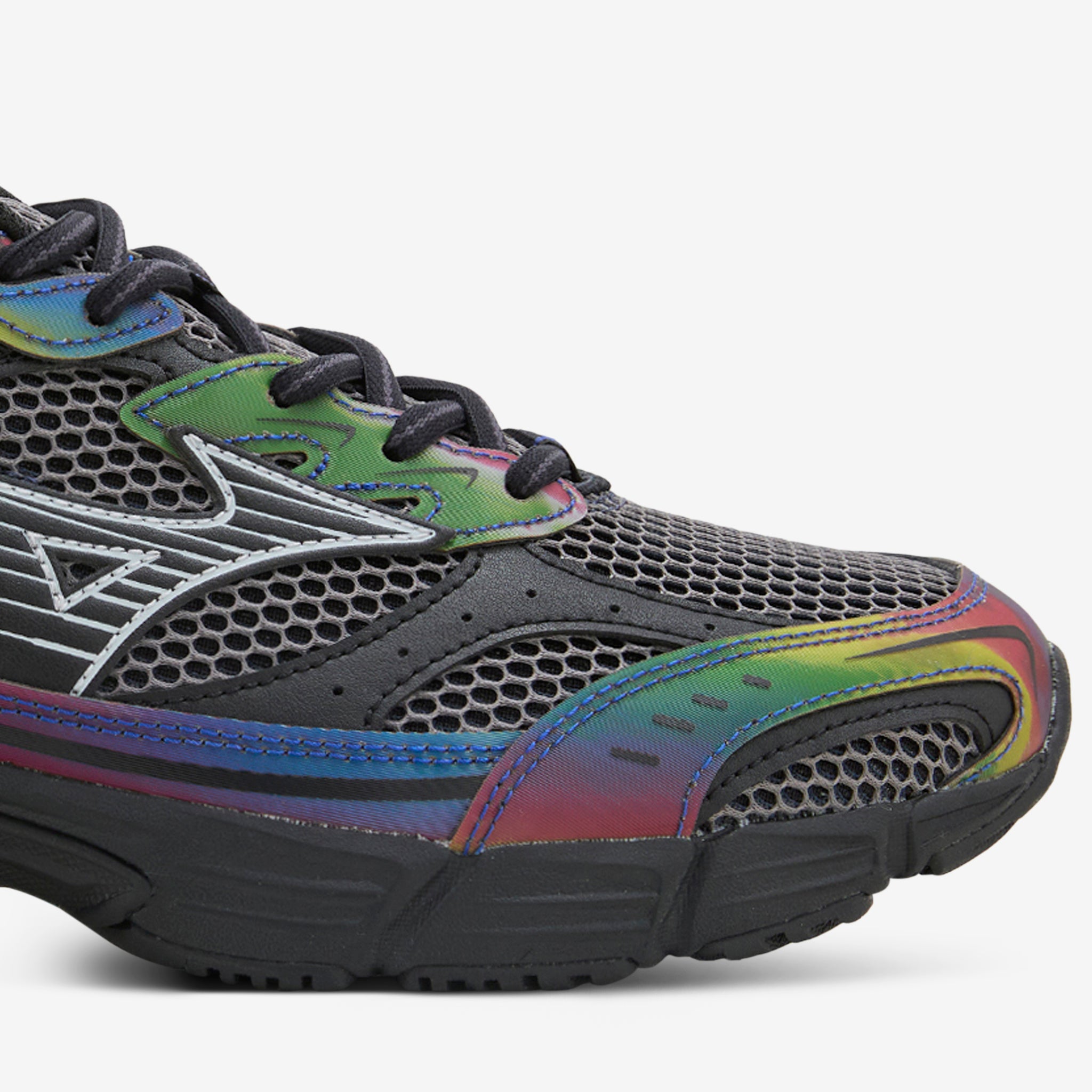 MXR 'Midnight Velocity' in Dress Blues, Black and Surf The Web from Mizuno. A silhouette dug up from the brands vast archives, this MXR includes a unique Lenticular synthetic leather upper with signature curved stitch lines and a supportive heel counter. Rubber outsole provides traction and supportive U4ic midsole foam provides unparalleled comfort. Finished with Mizuno branding and iridescent colour details throughout.