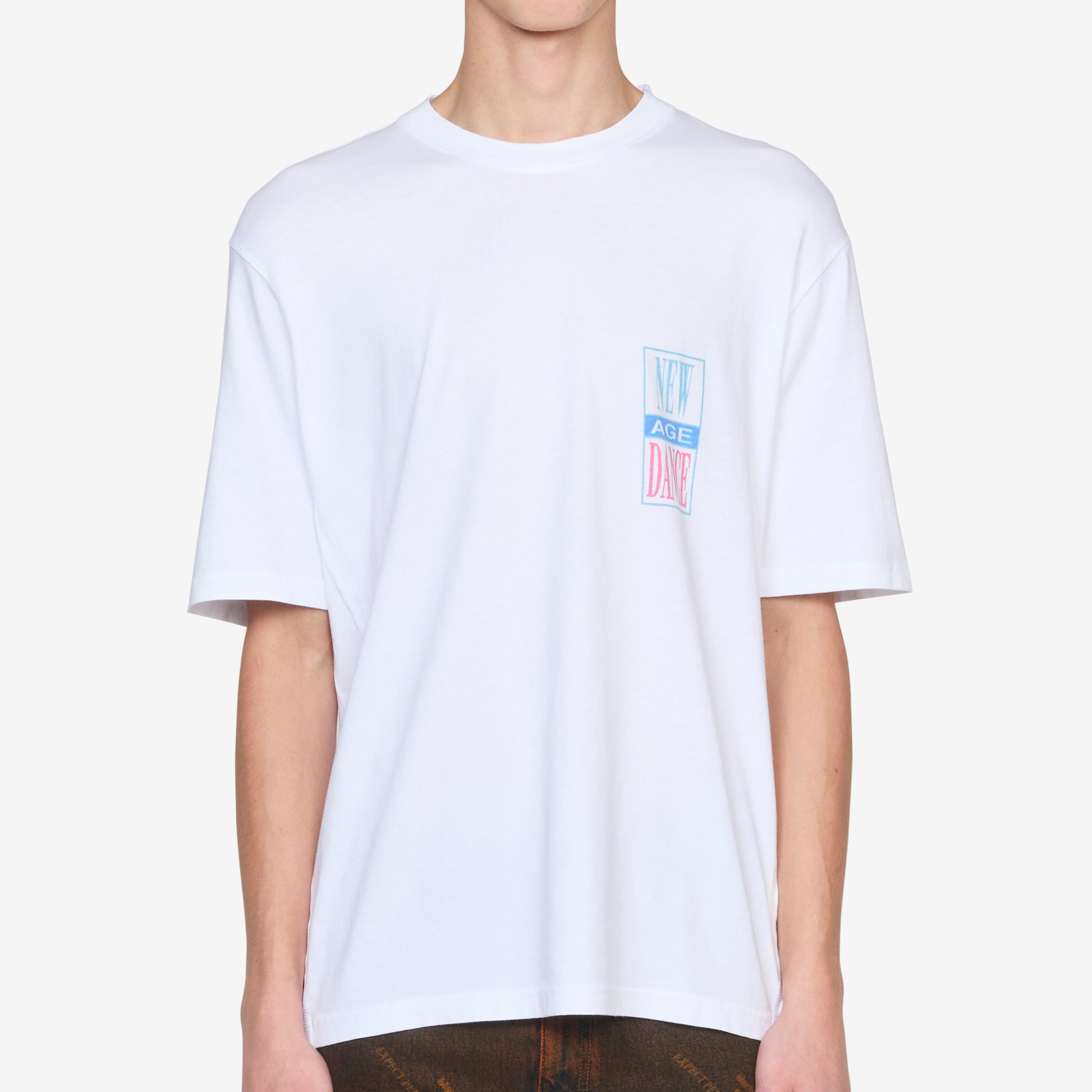 N.A.D. T-Shirt in White from ACMH by Magic Castles. Relaxed fit t-shirt with an inserted rib crew neckline and twin-needle stitching at the trims. Crafted from a garment-washed single jersey cotton. Finished with printed collaborative graphics at the front and back.