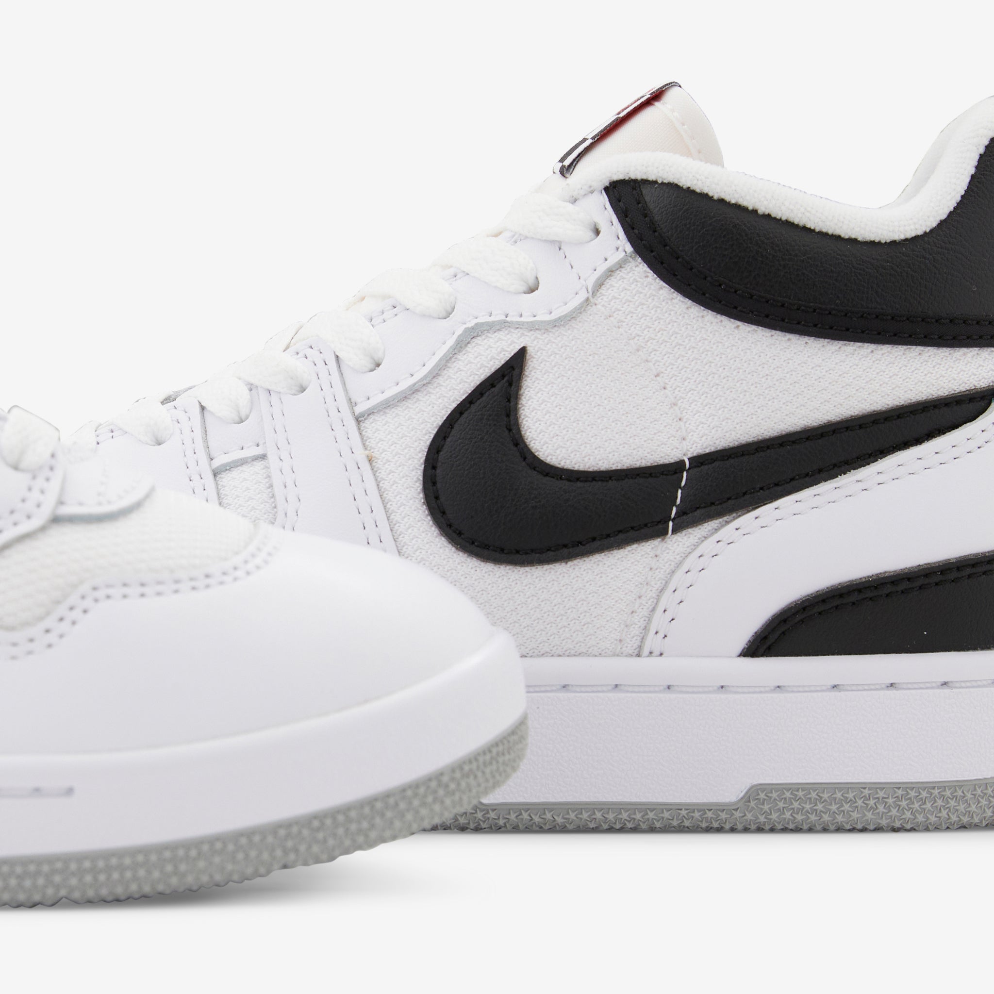 Men's Attack in White, Black and White from Nike. A 1:1 recreation of John McEnroe's iconic '80s look with bold colour-blocking and a chequered tongue label. Features a foam midsole for lightweight cushioning and a rubber outsole for traction.