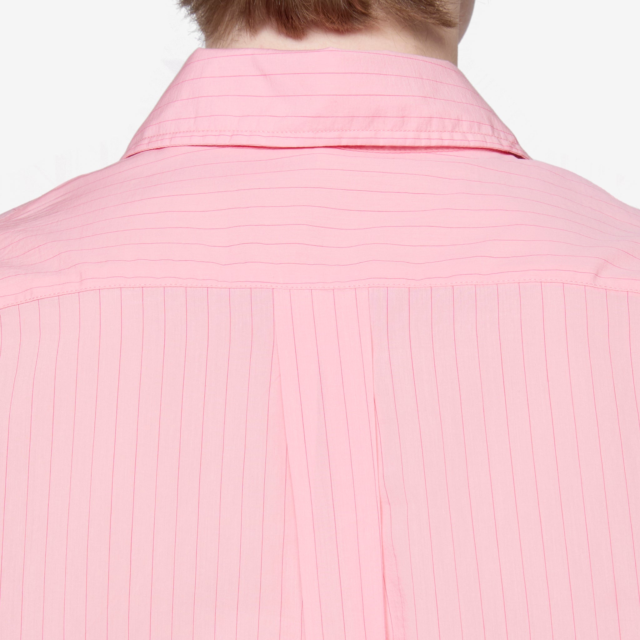 Men's Button Down Shirt in Pink from Sunflower. Relaxed fit longsleeve shirt with full button closure, a tennis tail hem and splits on the side seam. Crafted from a lightweight cotton blend with all-over tonal pinstripes.