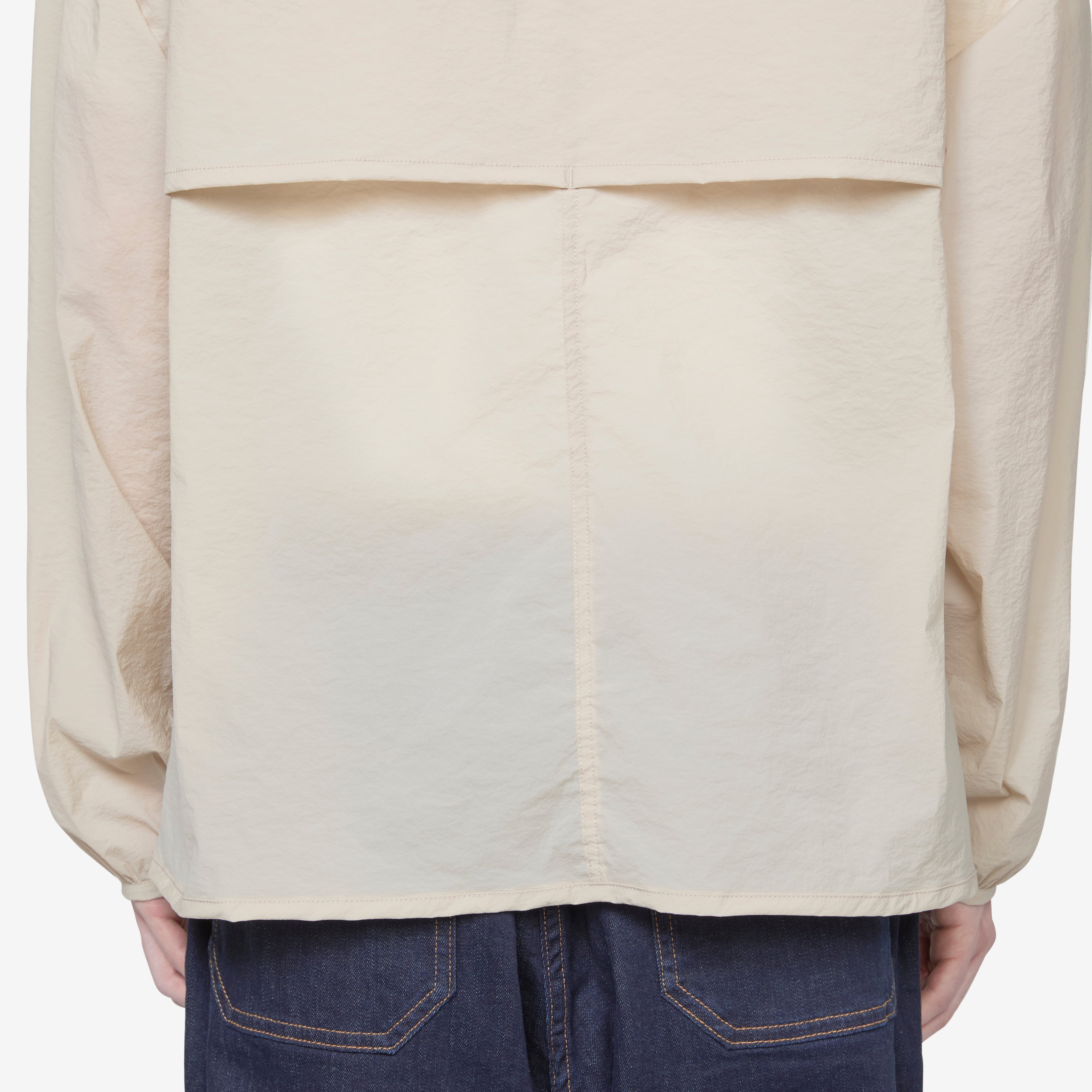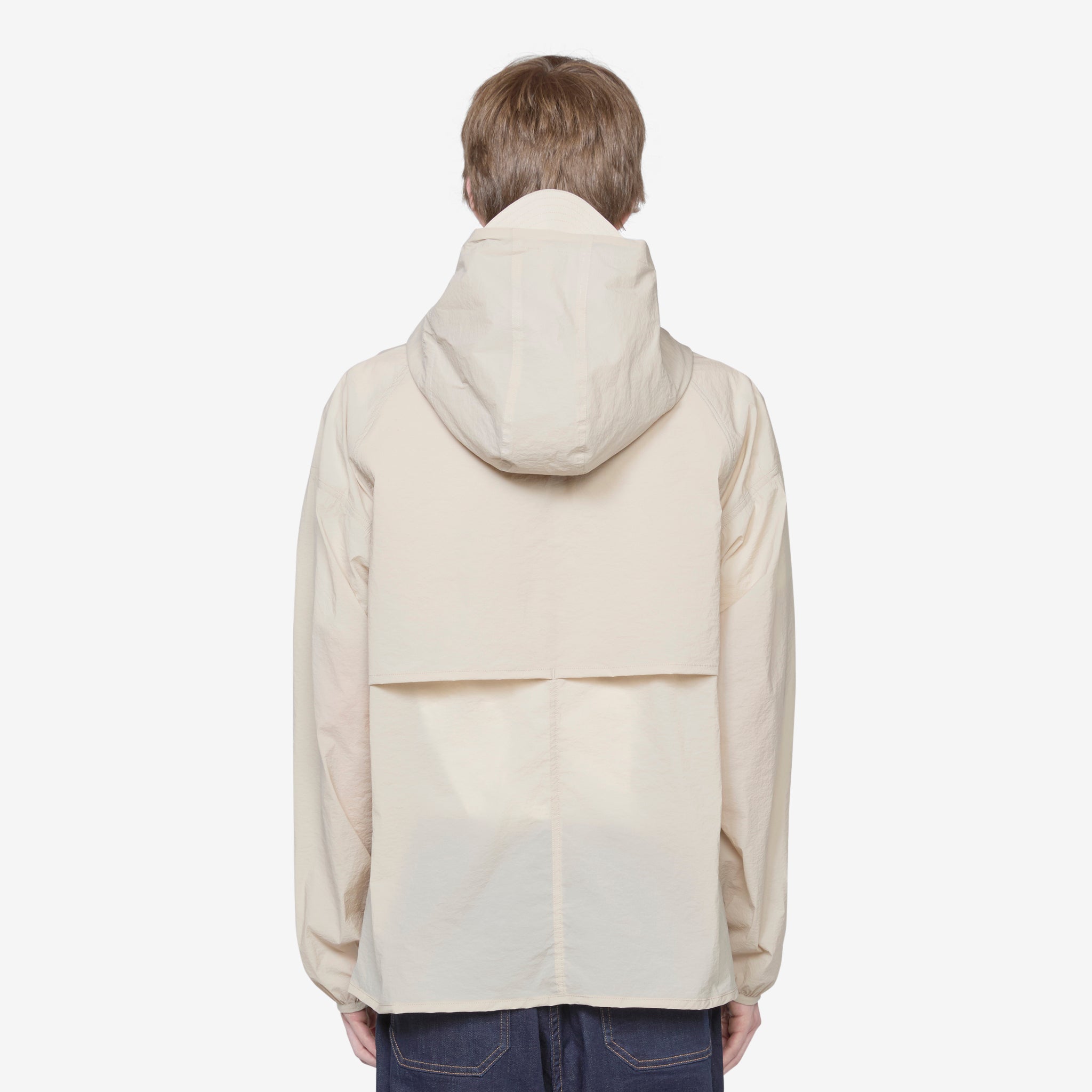 Men's Concha Jacket in Oat from Satta. Relaxed fit light outer shell jacket with full zip closure, elasticated cuffs and a hood with toggle and cord cinch detailing. Crafted from crinkle nylon woven in Korea. 2 pocket styling.