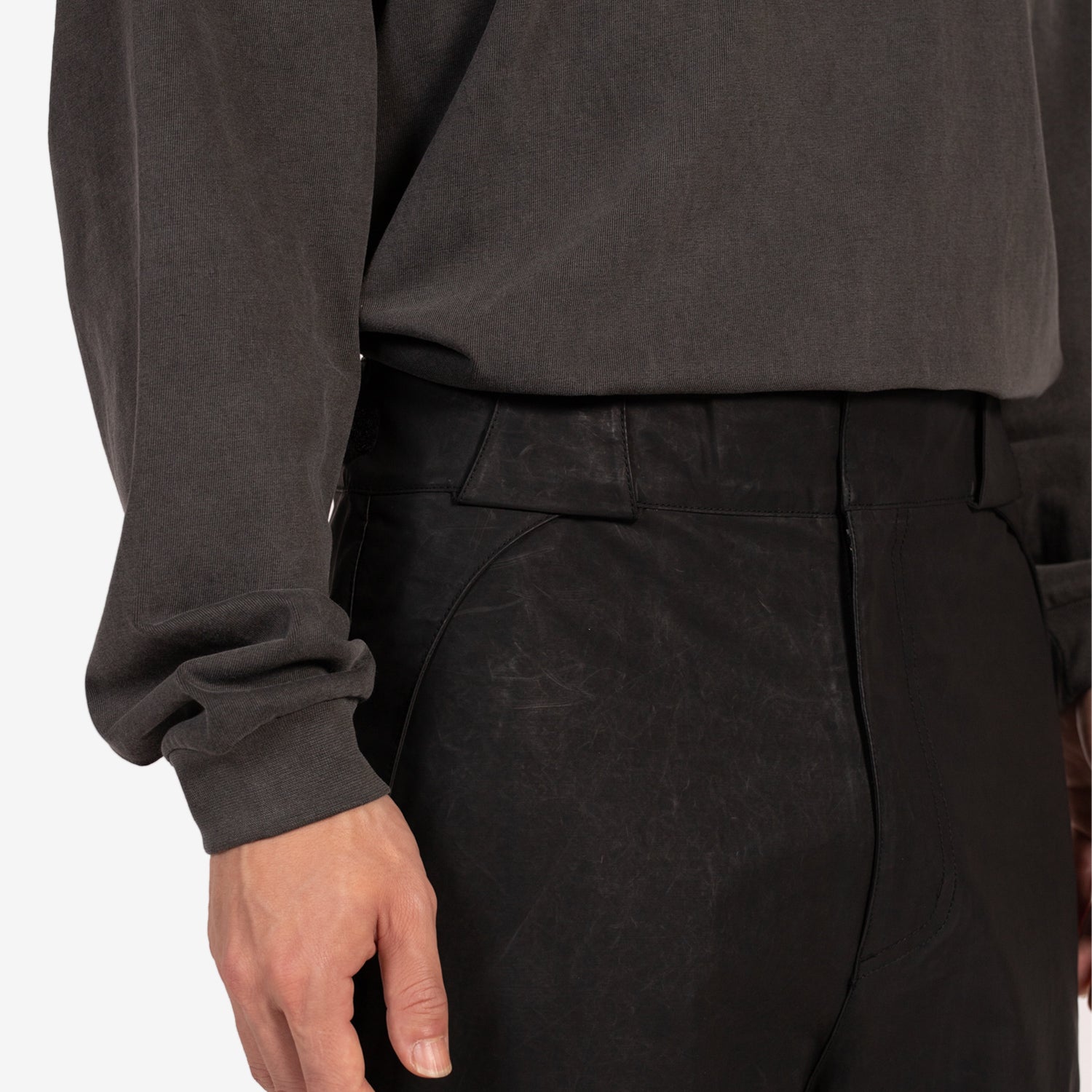 Ep.3 Synopsis 02 Trouser in Black from XLIM. Cotton blend trousers with 4 pocket construction and YKK zipper closure. Features suede, lace and ribbed fabric panelling. Embossed cotton detailing on the hem.