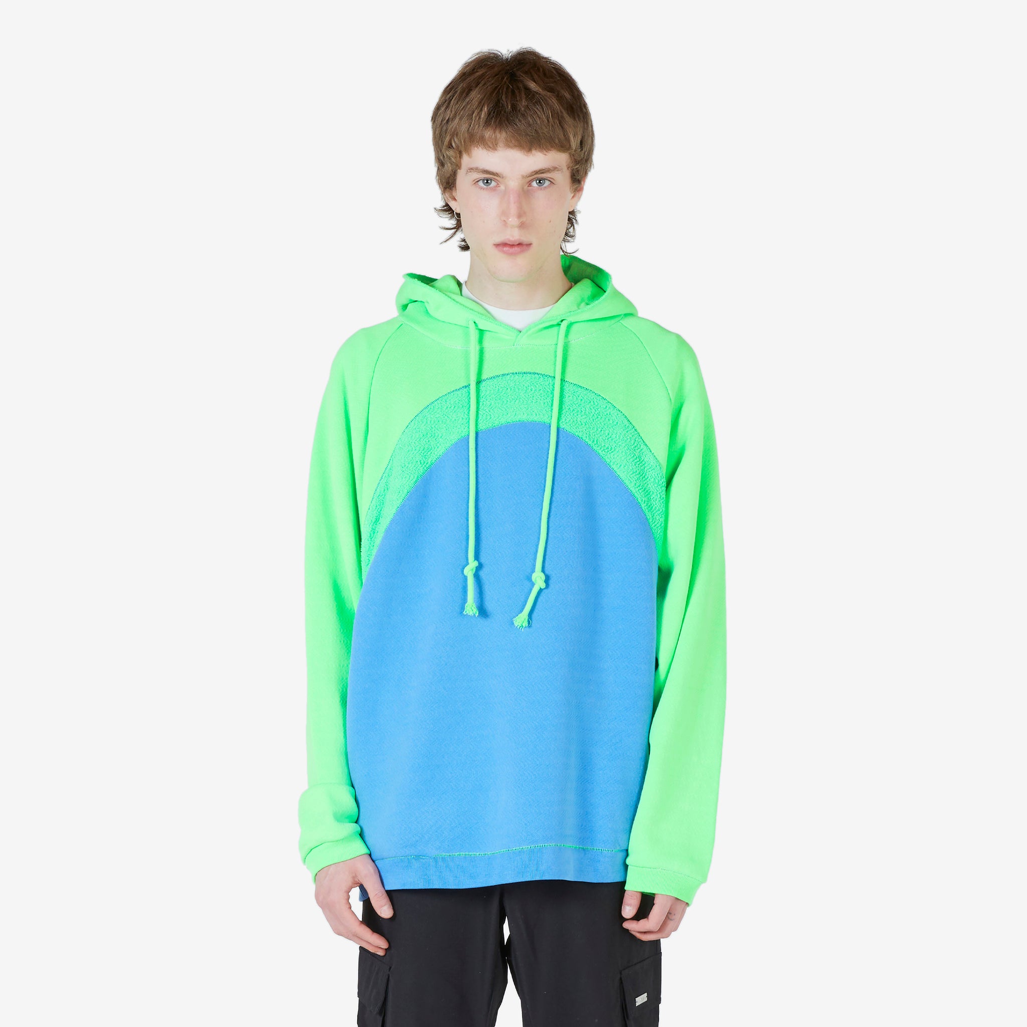 Unisex Rainbow Hoodie in Blue from ERL. Boxy fit pullover hooded sweatshirt with a drawstring hood and ribbed cuffs and hem. Crafted from cotton with a swirl pattern.