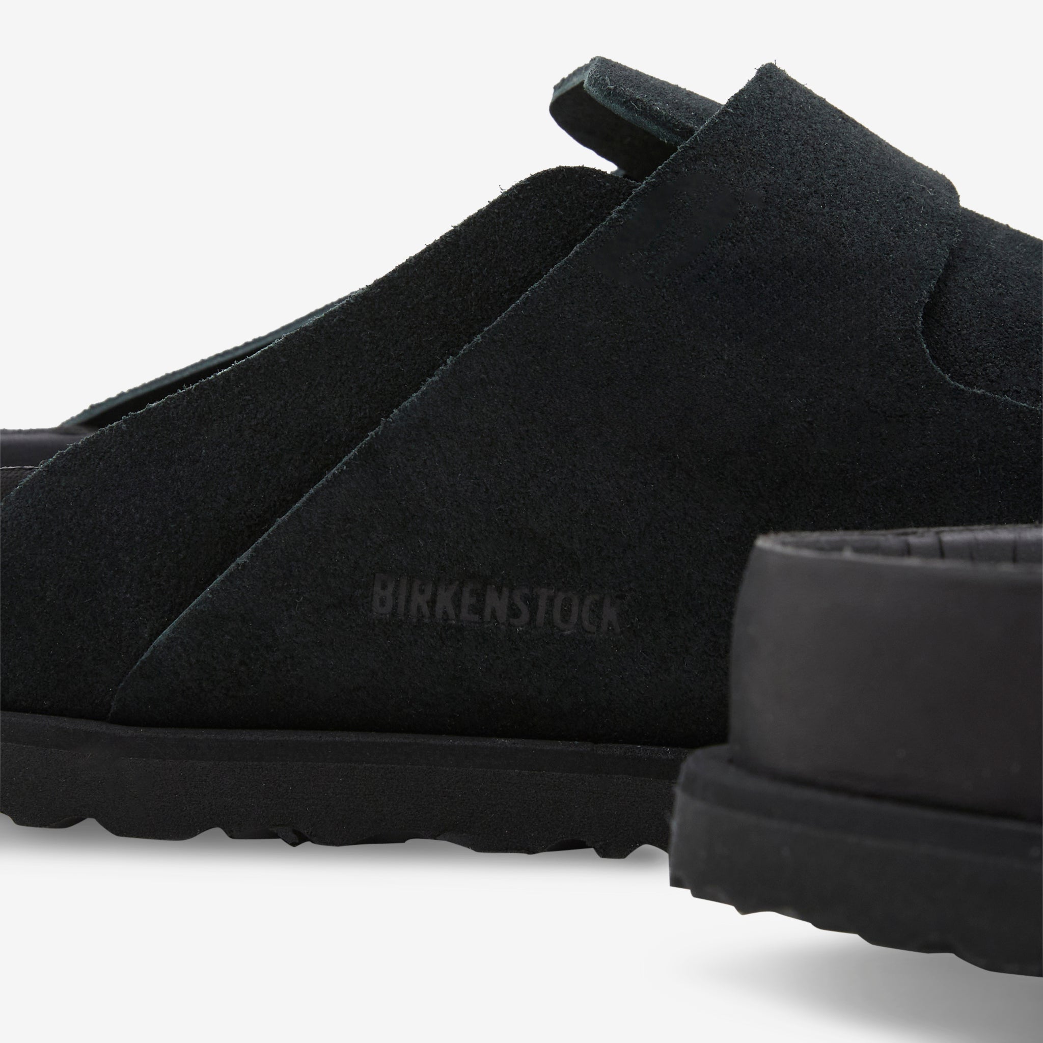 Unisex 222 West 1774 Exquisite Suede in Black from Birkenstock 1774. Hand crafted clogs with a premium suede upper and anatomical shaped Birkenstock footbed. Handcrafted in Germany with intricate 2-strap buckle detailing. Finished with subtle embossed branding.