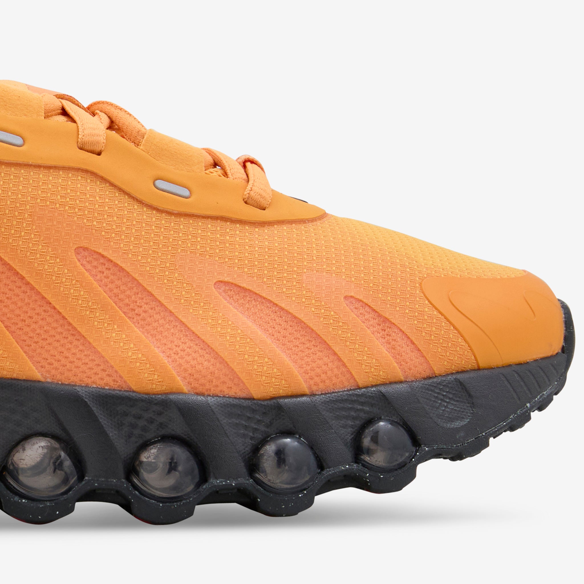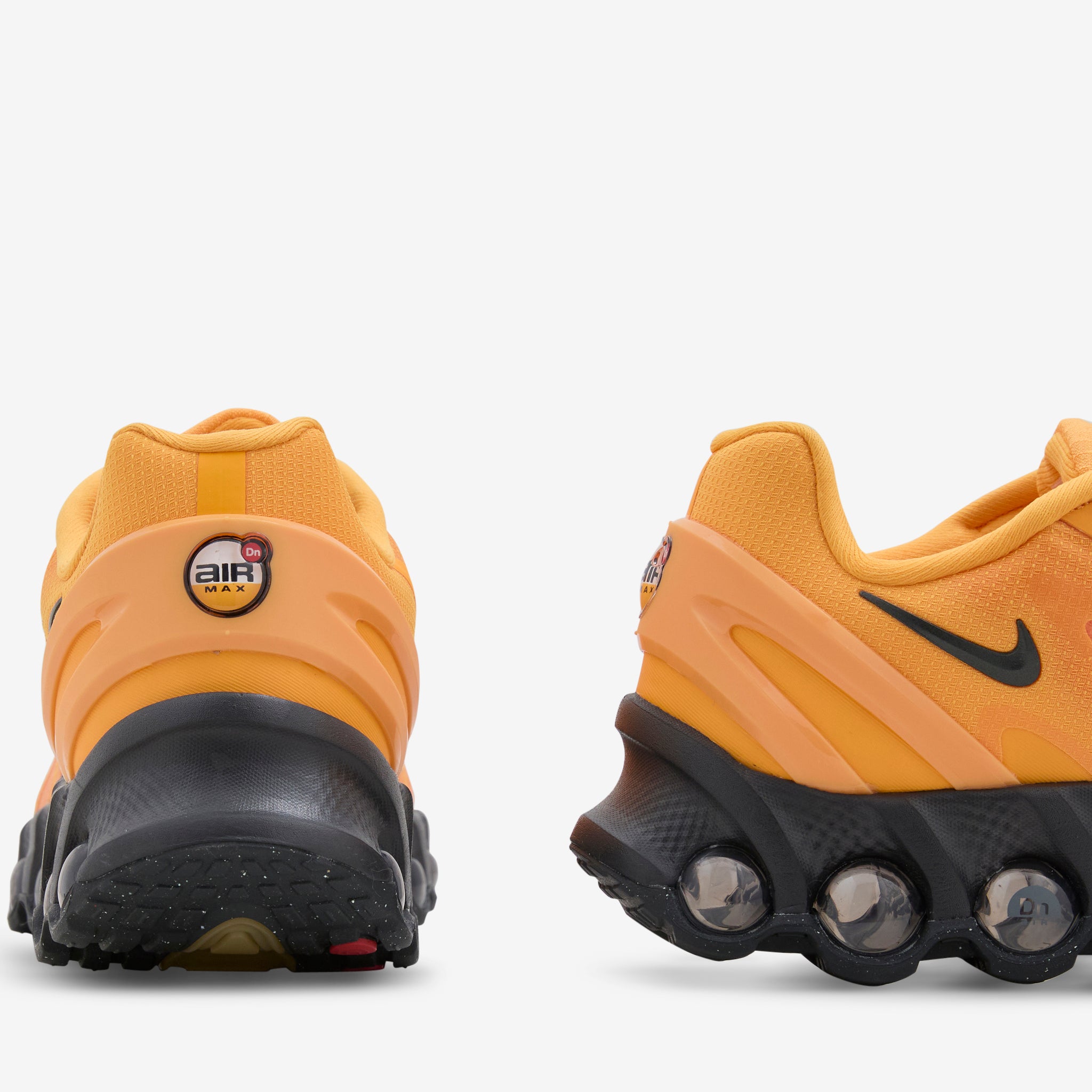 Men's Air Max Dn8 in Sundial and Dark Smoke Grey from Nike. Sculpted mesh upper with synthetic overlays and a layered toe tip for durability. Full-length Dynamic Air system condensed into eight pressured Air tubes provides unrivalled custom cushioning. Finished with a glossy 3D Swoosh and heel cage.