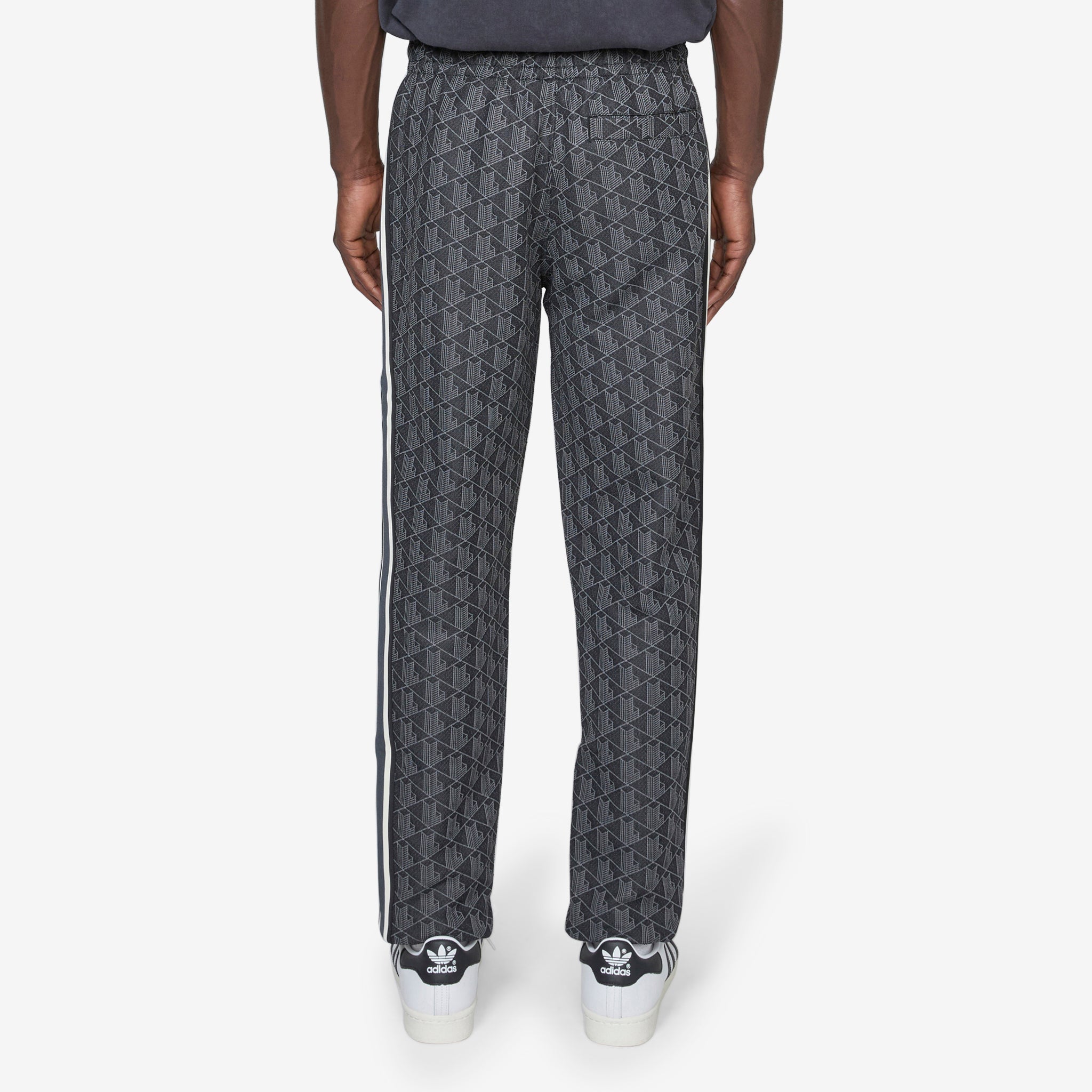 Monogram Track Pant in Black and Graphite from Lacoste. Regular fit, track pants with a slight taper and an elasticated waistband. Crafted from a polyester and cotton blend in an all-over jacquard monogram. 3 pocket styling with two inseam pockets and a welt pocket on the back. Finished with embroidered branding.