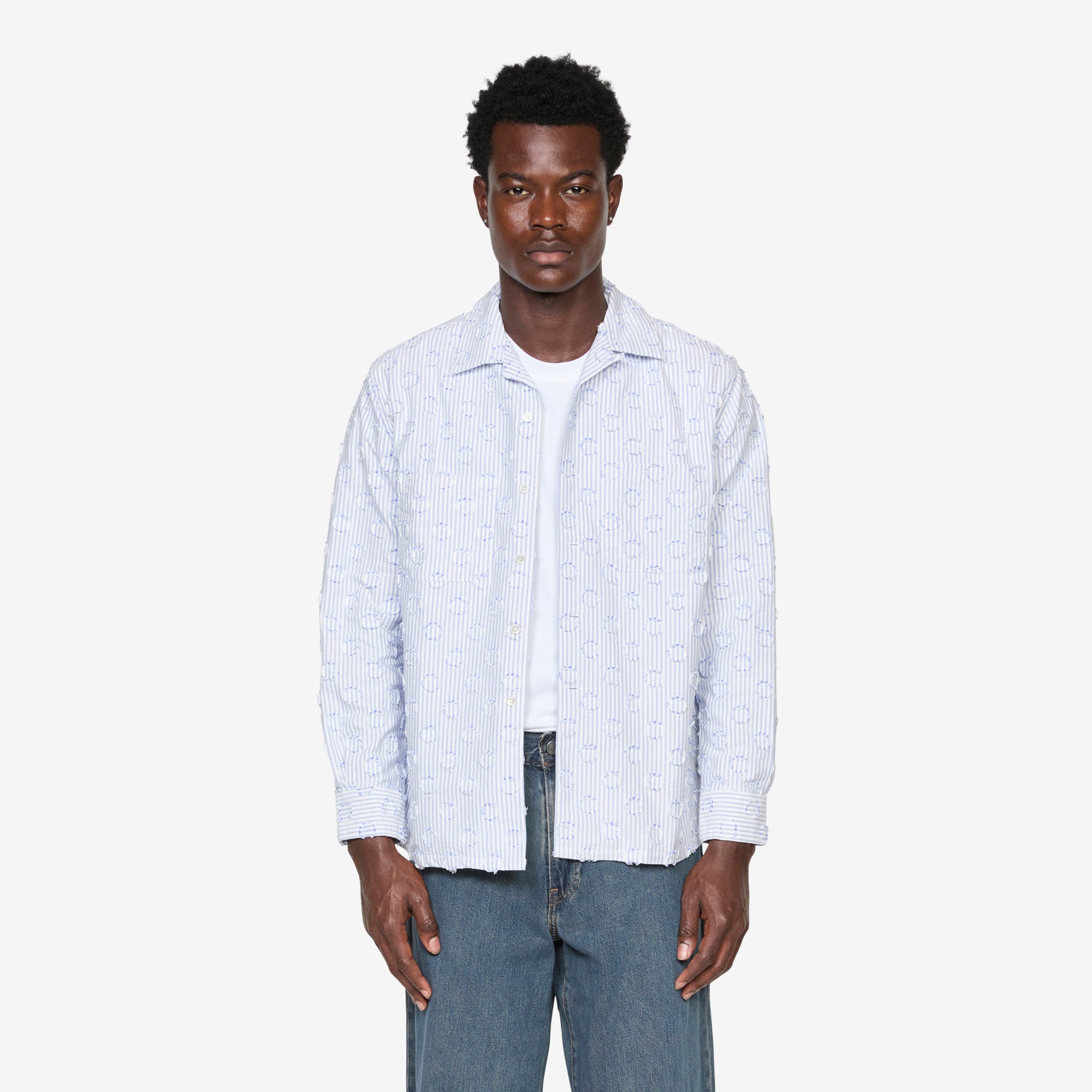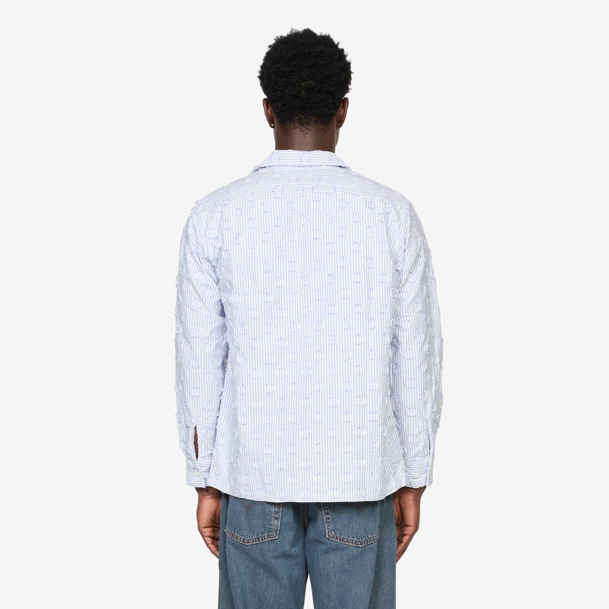 Open Collar Burnout Dot Candy Stripe Shirt Blue Stripe