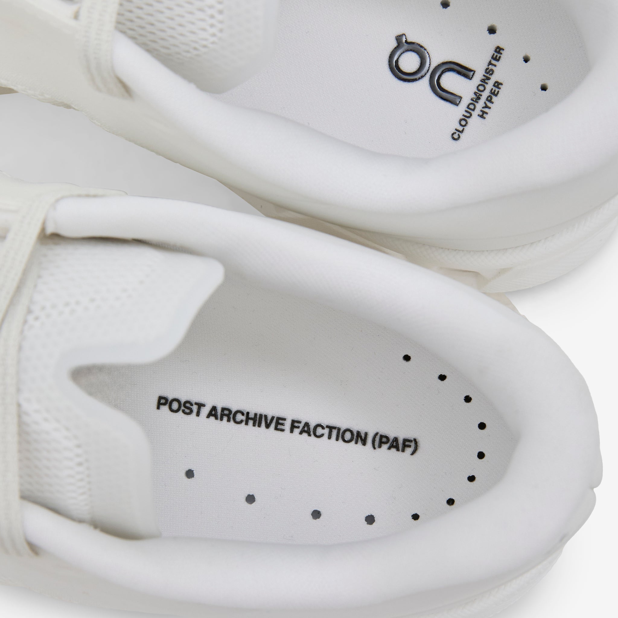 Post Archive Faction (PAF) collaborates with On on the Women's Cloudmonster Hyper in White. Microfiber upper features an asymmetric lacing system and breathable mesh panels. Dual-foam construction cushioning and Helion™ HF provide max energy return and impact absorption. Finished with a forward-rolling rubber outsole and underfoot co-branding.