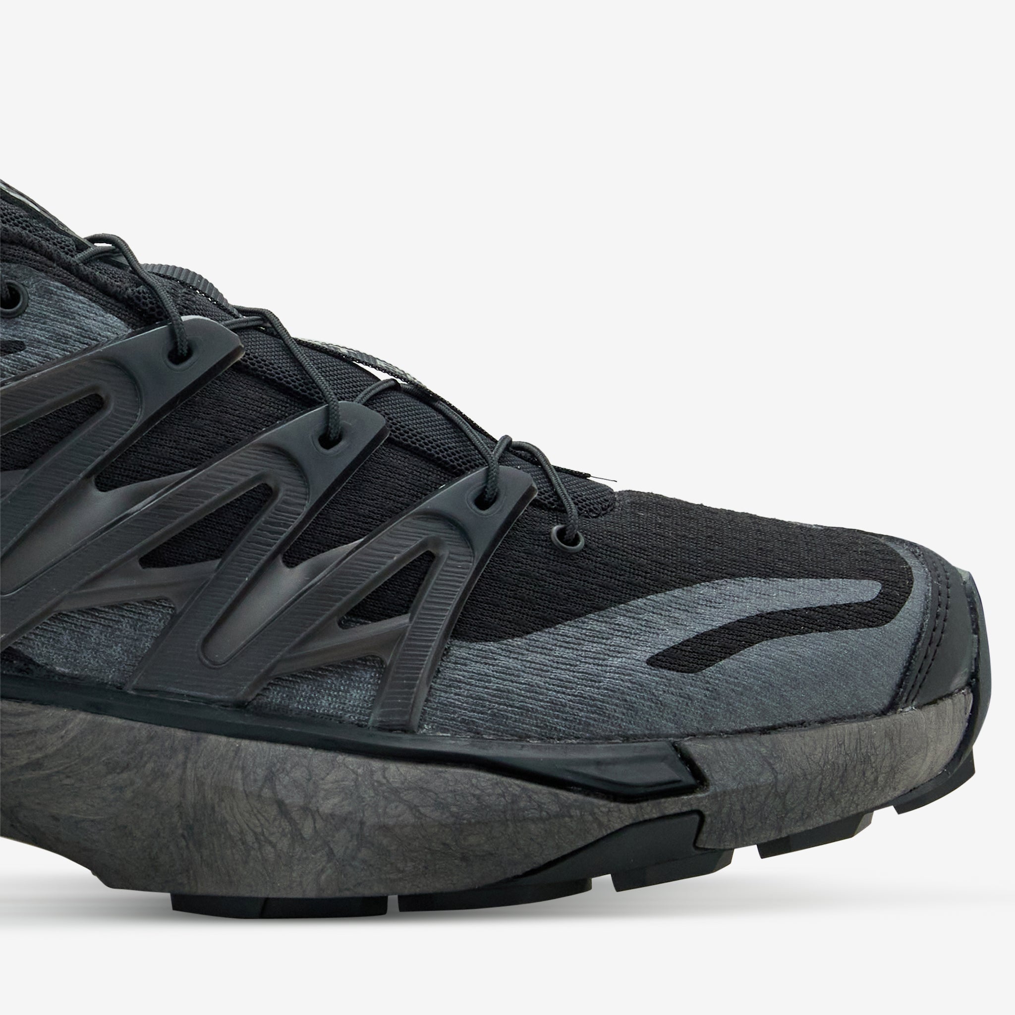 Men's XT PU.RE ADVANCED in Black, Black and Phantom from Salomon. 3D open mesh upper with a moulded OrthoLite® sockliner, TPU Sensifit™ cage and signature Quicklace™ lacing system. Advanced Chassis™ insert in the outsole provides strong lateral support and optimal mobility whilst the InfiniFOAM midsole offers lightweight cushioning. Finished with an All Terrain Contagrip® outsole with chevron lugs for unparalleled traction.