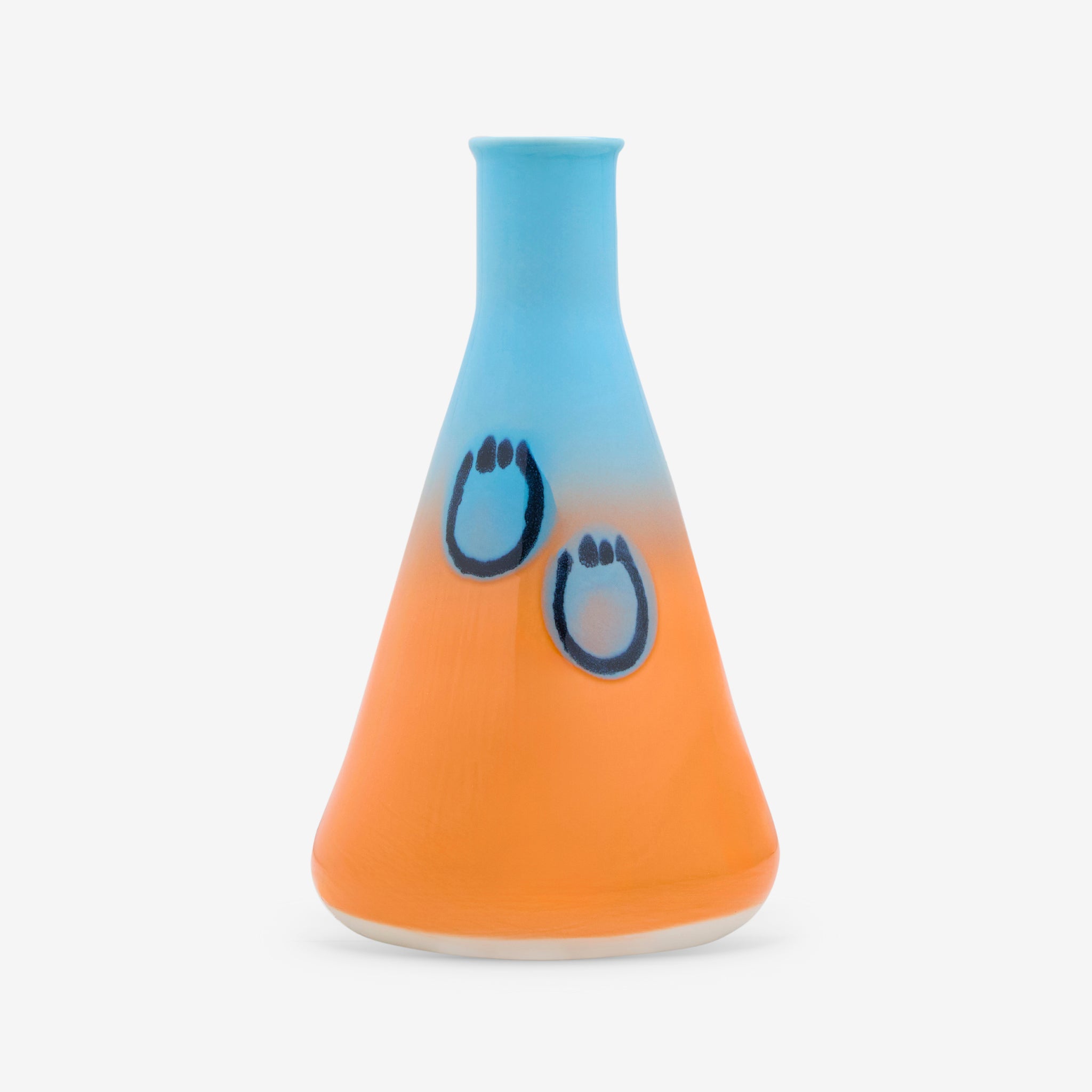 Erlenmeyer Jug in Water Orange Gradient Smile from FRIZBEE CERAMICS. Hand-casted and hand-glazed jug perfect for displaying flowers or serving wine. Dishwasher safe and highly durable.