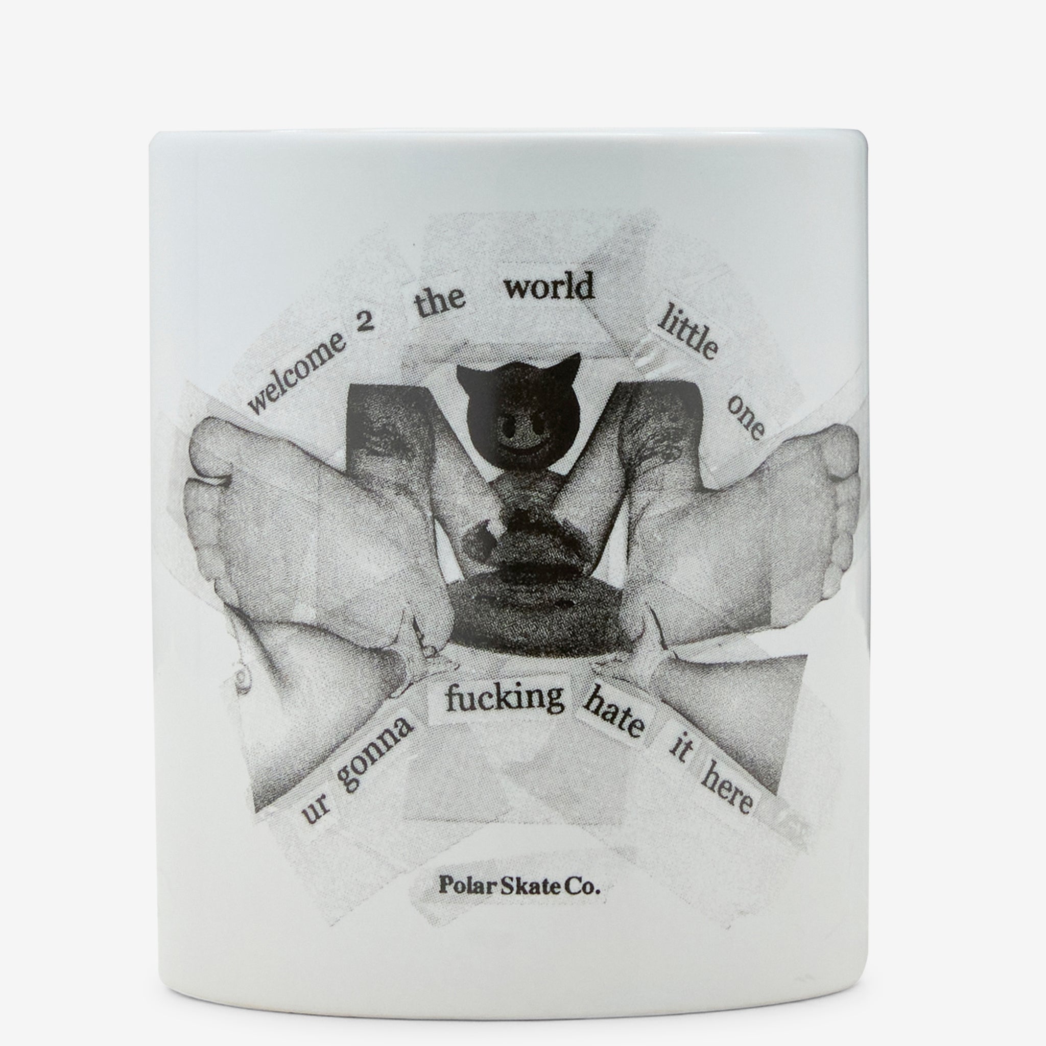 Welcome 2 The World Mug in White from Polar Skate Co. Classic mug featuring printed artwork by Sirus F Gahan.