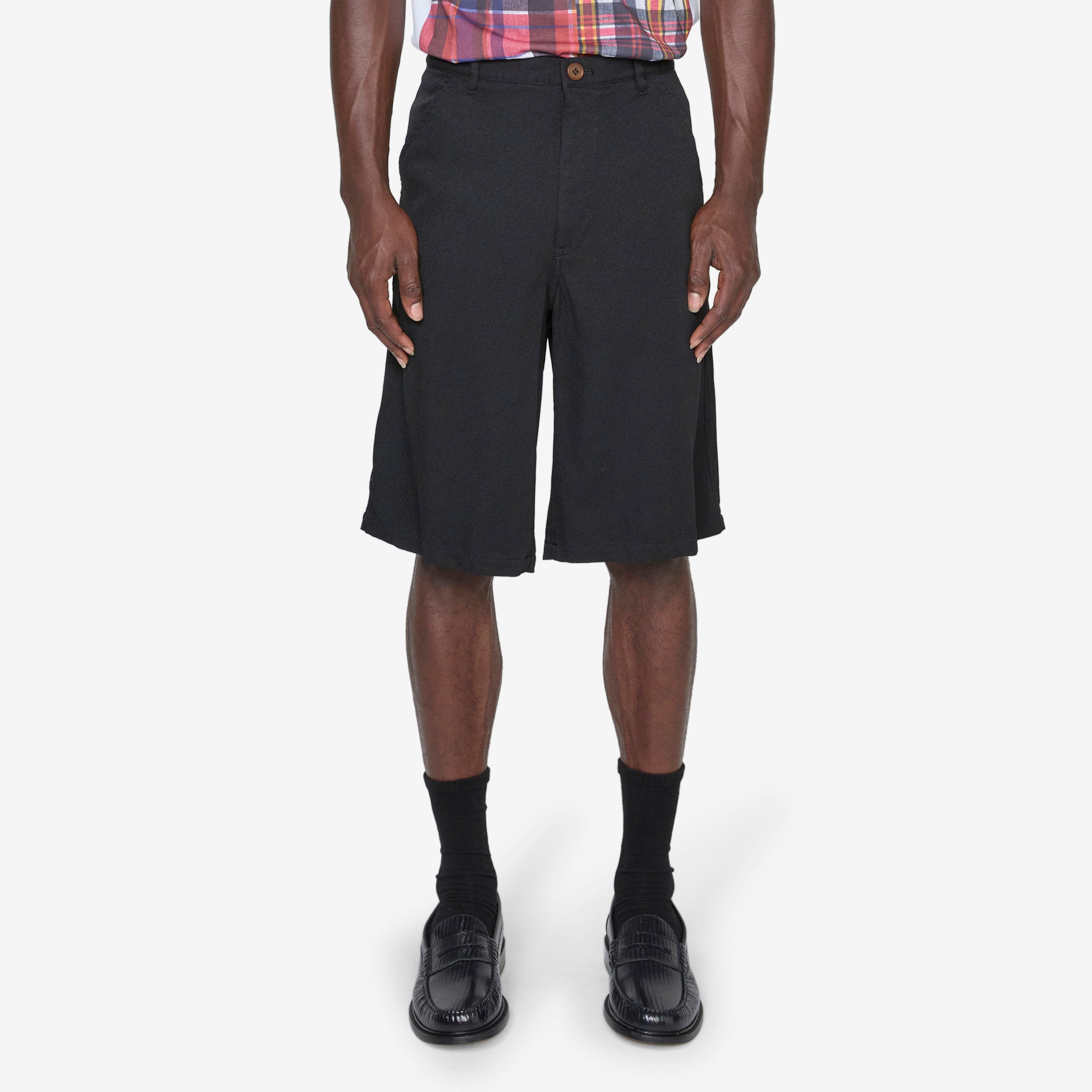 Knee Length Shorts in Black from Comme des Garçons SHIRT. Relaxed fit shorts with a belt loop waistband and classic 4-pocket construction. Crafted from a durable polyester twill in a wide-leg silhouette.