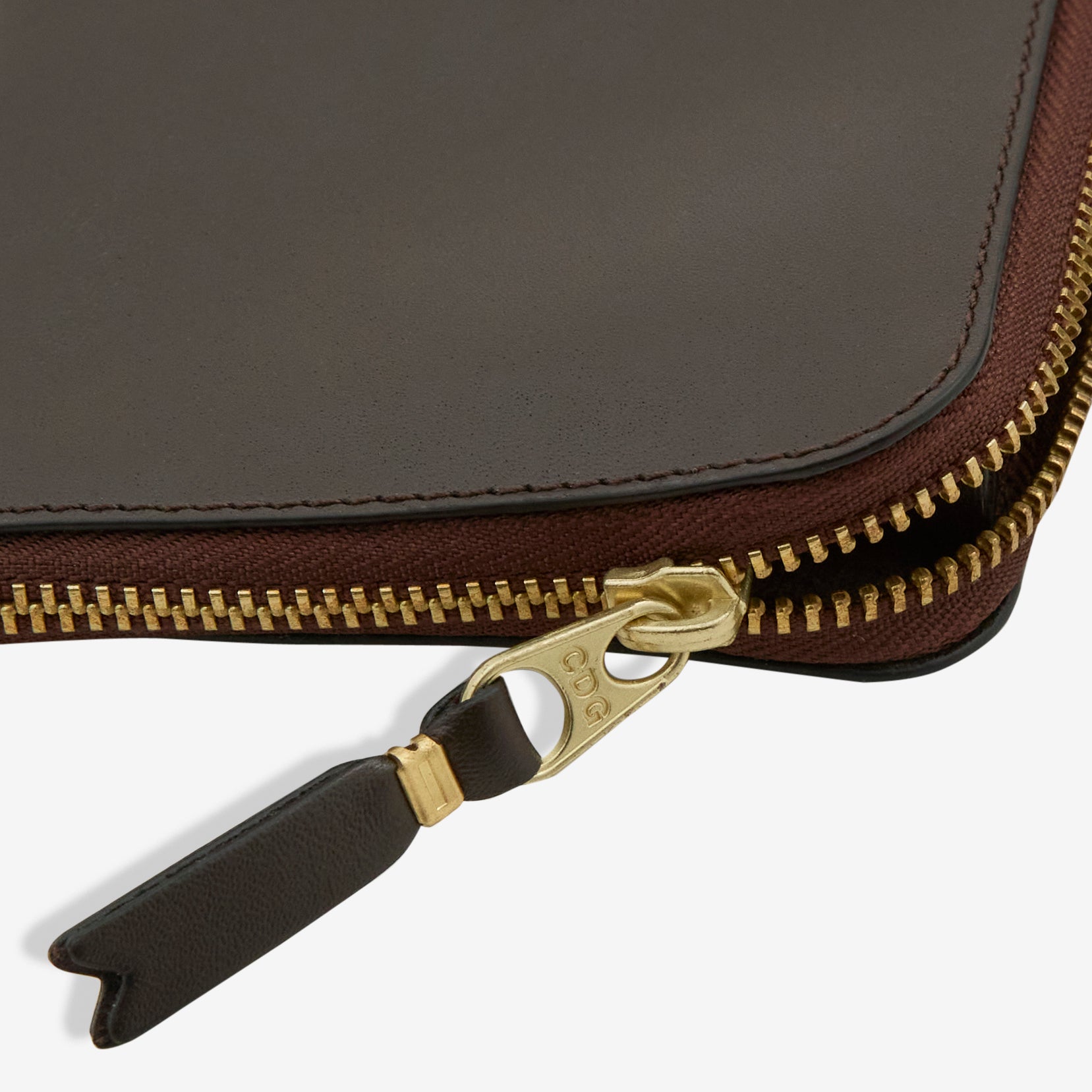 SA3100 Classic Line Wallet in Brown from COMME des GARÇONS WALLET. Compact corner zip wallet with an internal coin pouch for easy organisation. Crafted from smooth bovine leather. Finished with gold hardware and gold foil Comme des Garçons branding on the interior.