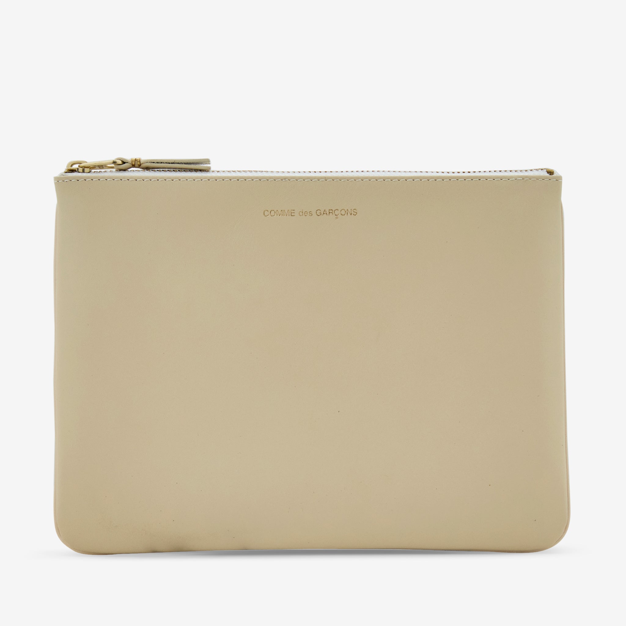 SA5100 Classic Line Wallet in Off White from COMME des GARÇONS WALLET. Large-size pouch wallet with zip closure at the top. Crafted from smooth bovine leather. Finished with gold hardware and gold foil Comme des Garçons branding on the exterior.