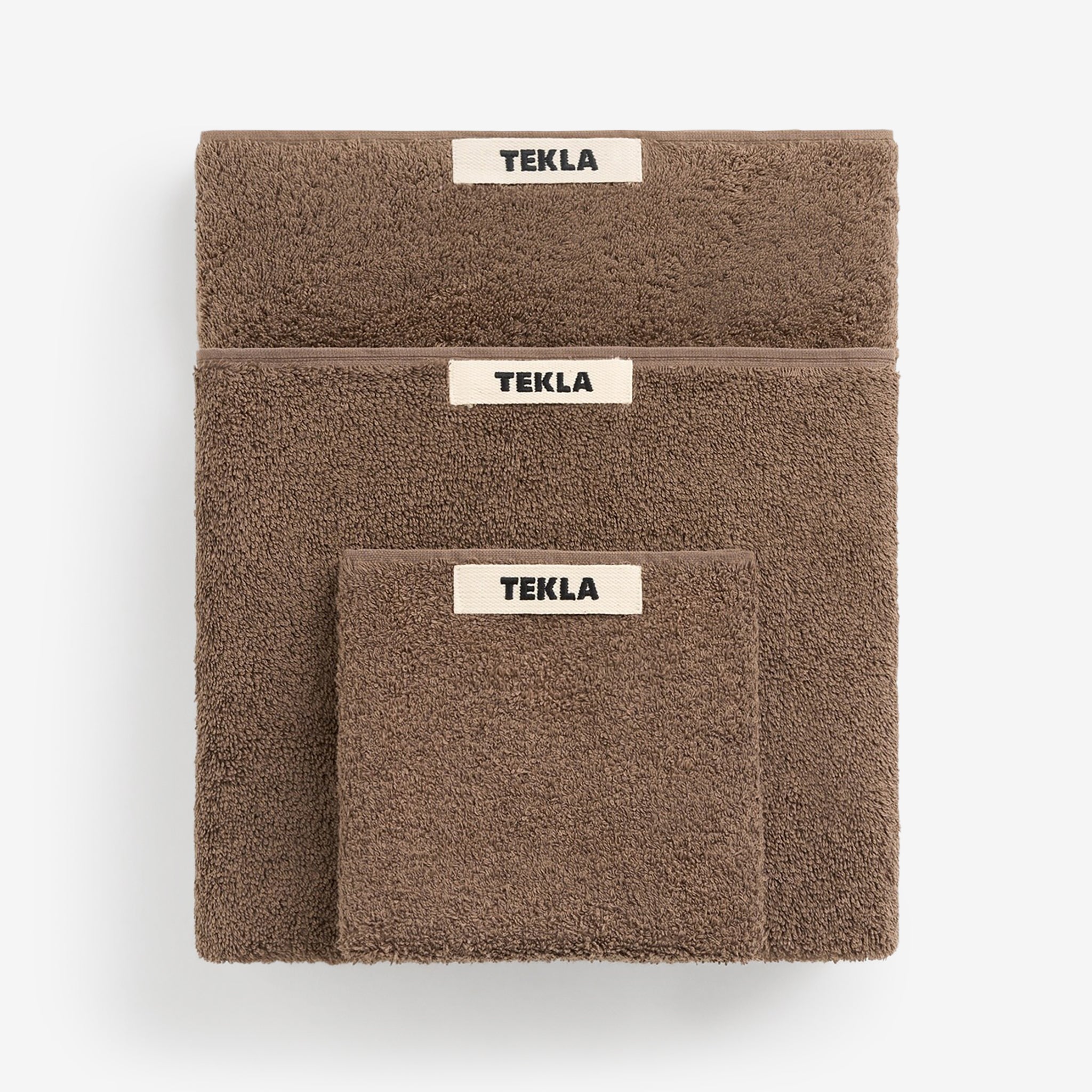 Terry Towel in Kodiak Brown from Tekla. Gentle on the skin and fast to dry, these towels are constructed with extra-long yarns which are extra-combed for a super soft finish. Crafted from a thick, 600 GSM organic cotton terry weave which perfectly balances softness with efficient drying. Finished with closed corner construction and a sturdy hanger loop.