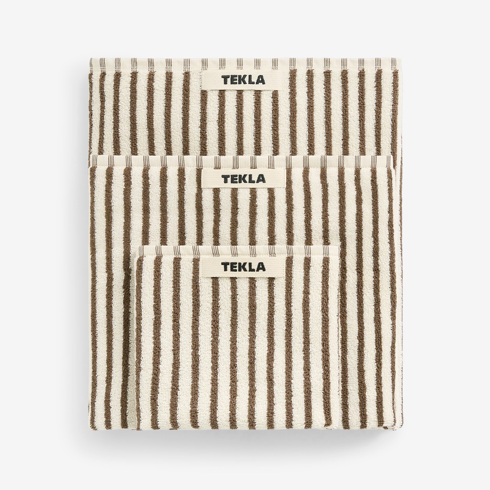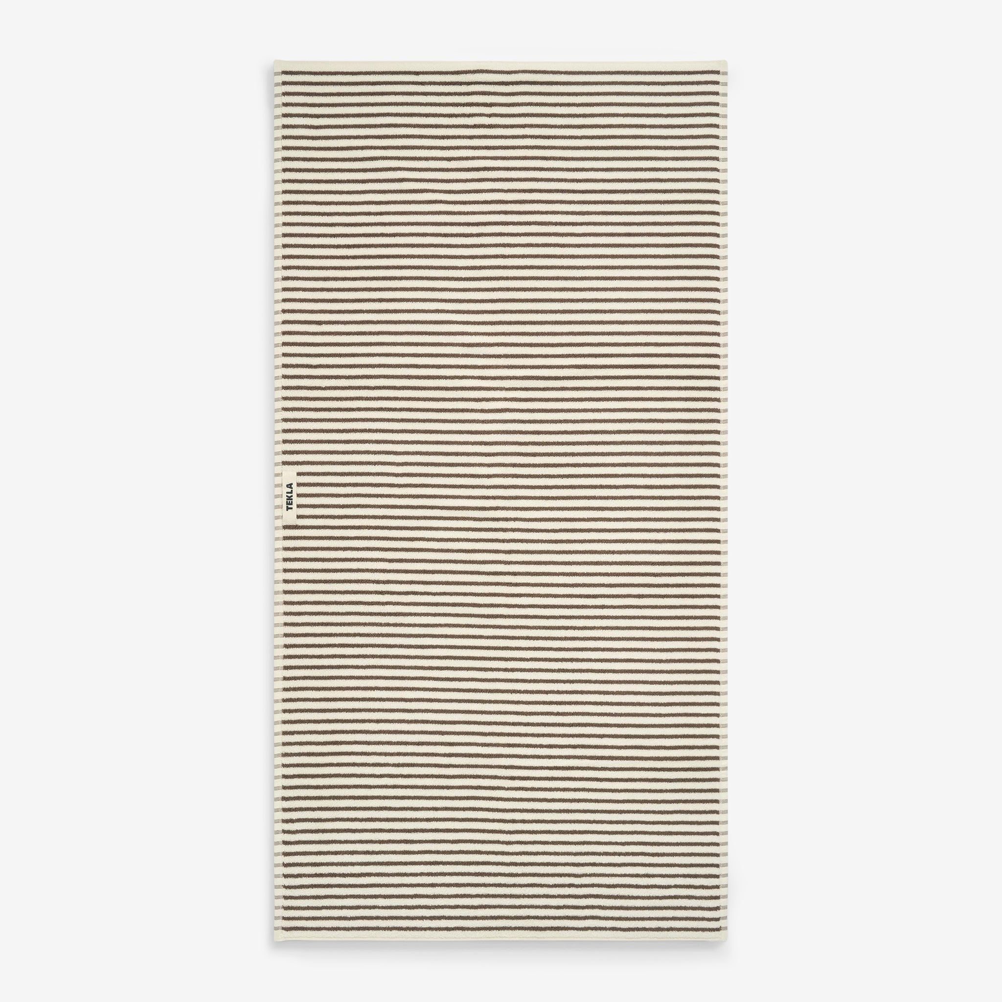 Terry Towel in Kodiak Stripes from Tekla. Gentle on the skin and fast to dry, these towels are constructed with extra-long yarns which are extra-combed for a super soft finish. Crafted from a thick, 600 GSM organic cotton terry weave which perfectly balances softness with efficient drying. Finished with closed corner construction and a sturdy hanger loop.