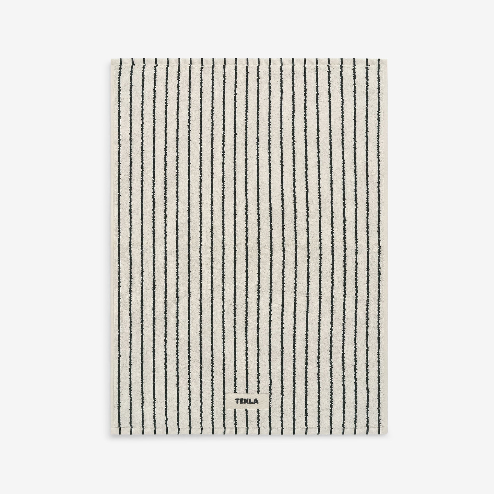 Bath Mat in Racing Green Stripes from Tekla. Designed to balance absorbency and softness. Crafted from densely woven and extra-combed organic heavyweight cotton for longevity and maximum absorbency for drying with minimal effort. Finished with double-stitched hems, closed corners and a woven brand label.