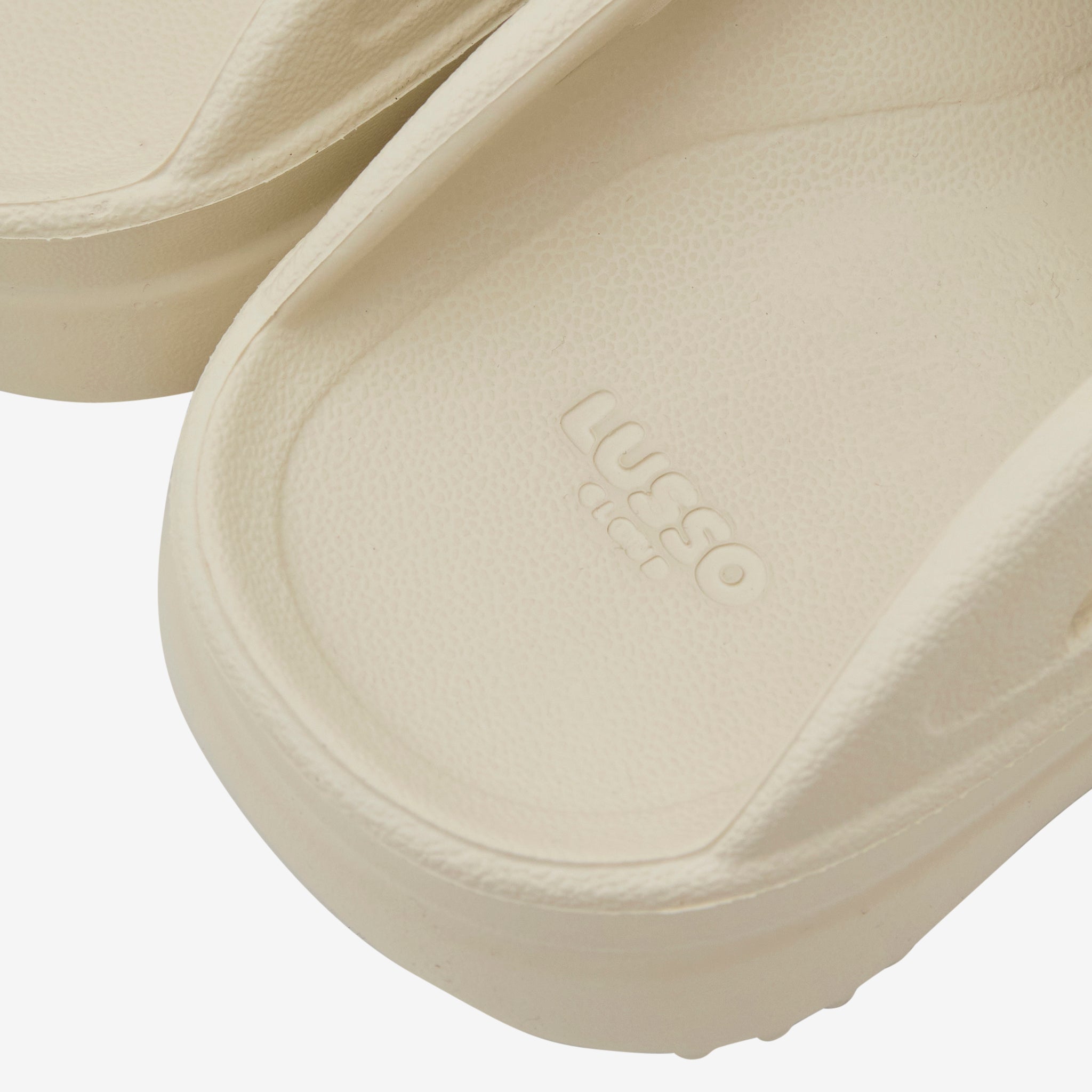 Unisex Scenario Slide in Bone White from Lusso Cloud. Lightweight slides with built-in arch support and patented square perforation for maximum airflow. Crafted from EVA with water friendly construction and internal texturing to reduce hot spots. Finished with a flex groove outsole and unique tread pattern for cross-surface traction.