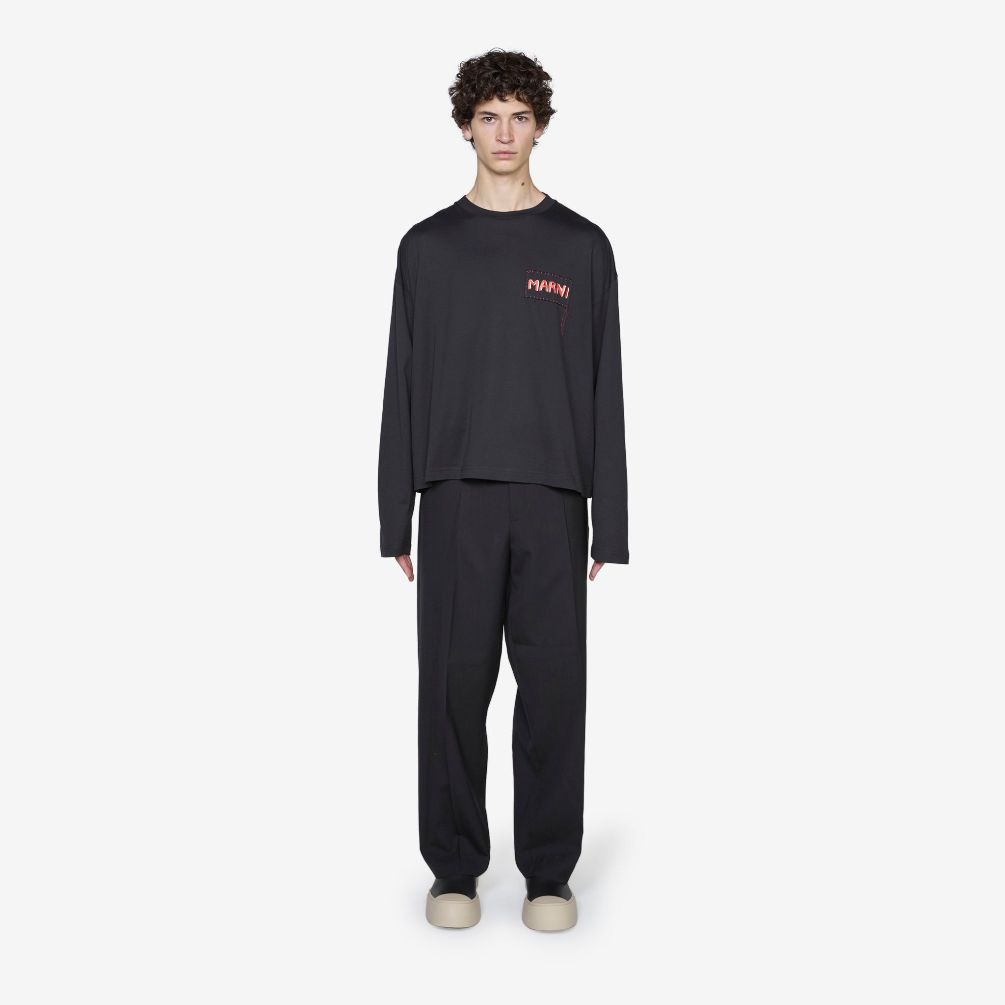 Stitch Logo T-Shirt in Black from Marni. Relaxed fit longsleeve t-shirt with dropped shoulders, slightly elongated sleeves and a ribbed crew neckline. Crafted from an organic cotton jersey and finished with an embroidered brand patch at the chest.