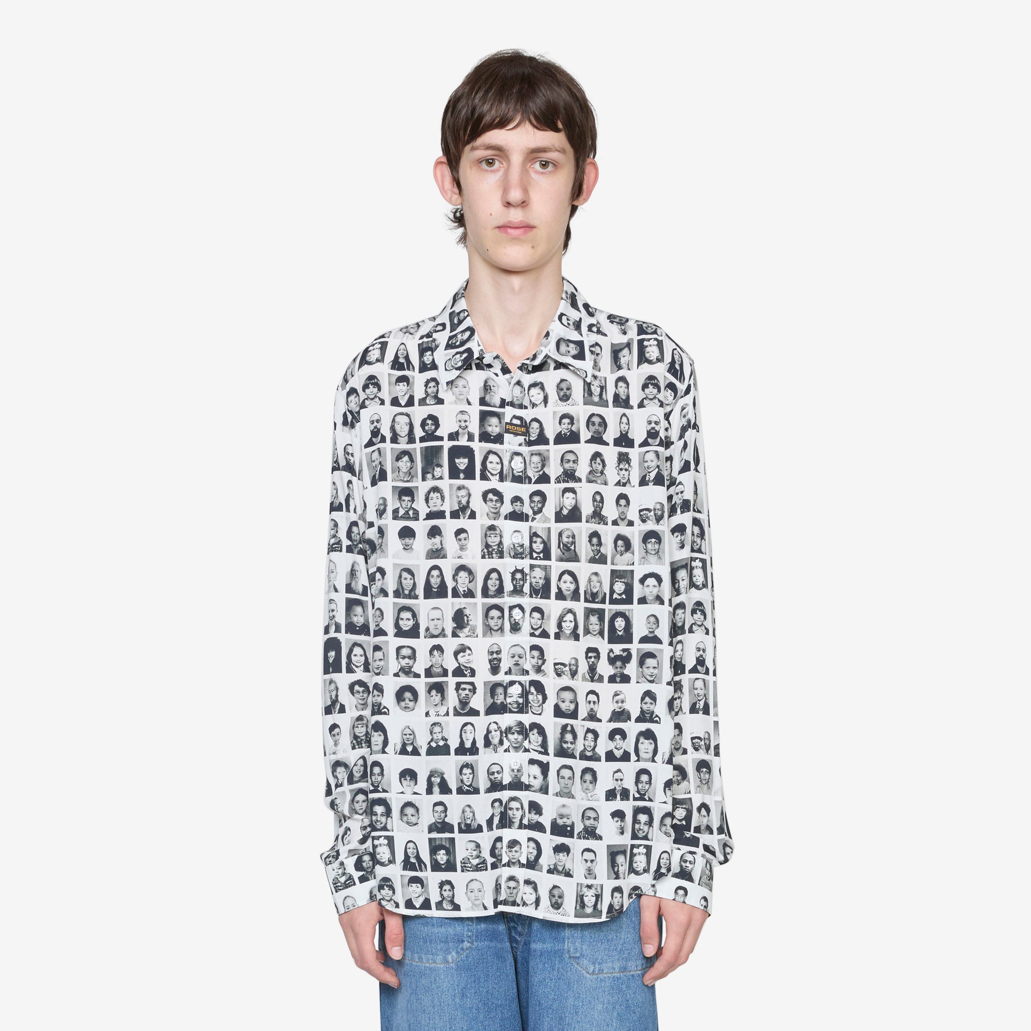 Classic Shirt in Blue and White Stripe from Martine Rose. Relaxed fit shirt with a classic collar, tonal full-button closure and slightly dropped shoulders. Crafted from a lightweight viscose in an all-over seasonal print. Finished with a woven brand label on the placket.