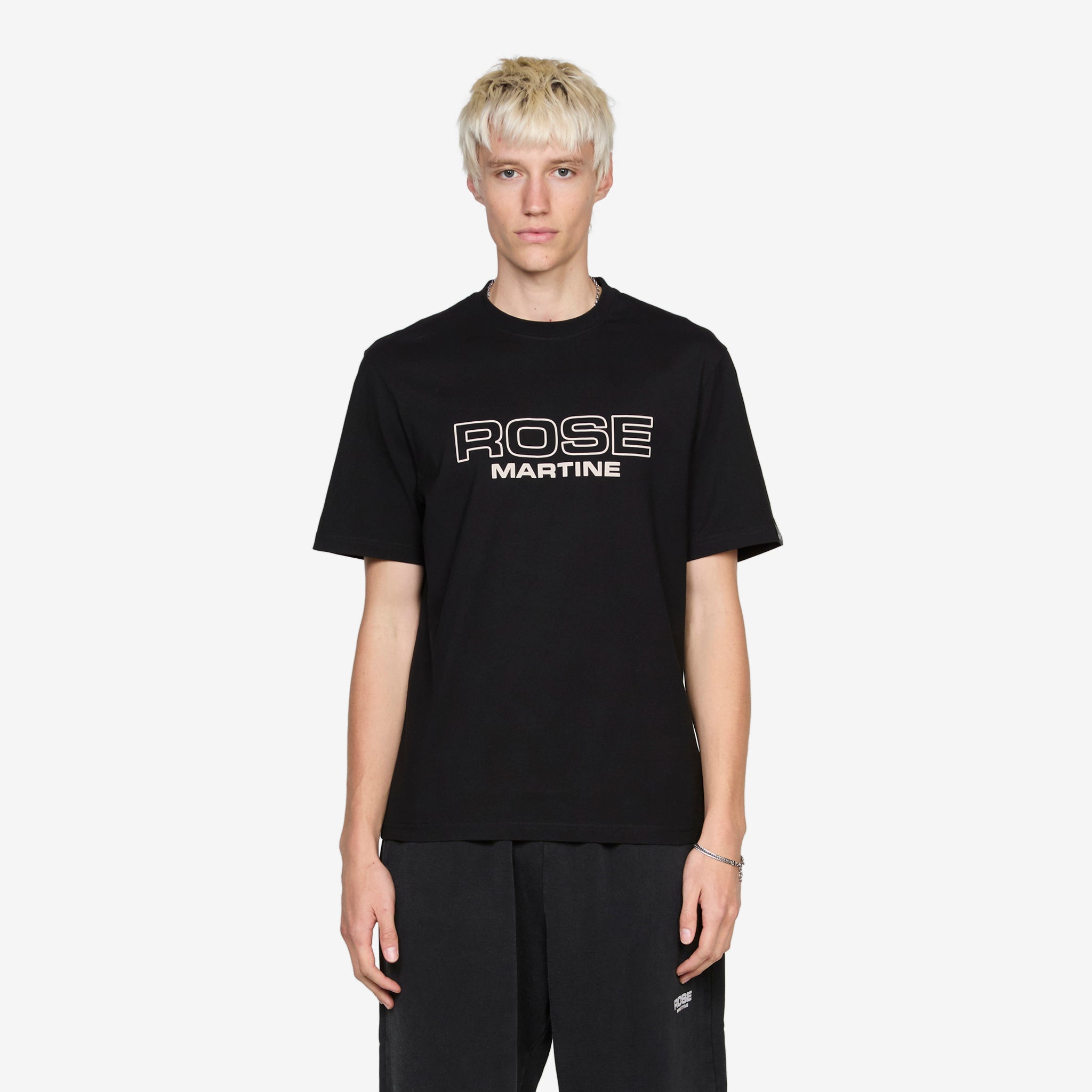 Classic T-Shirt in Black from Martine Rose. Regular fit t-shirt with a ribbed crew neckline. Crafted from soft cotton jersey and finished with printed branding at the chest.