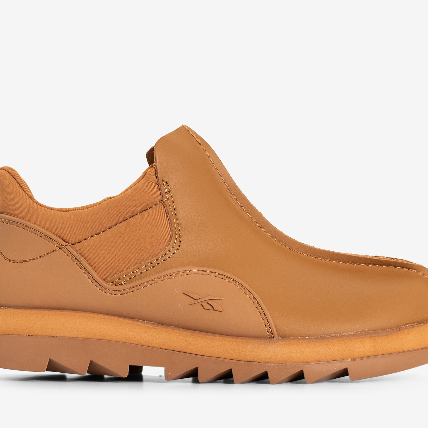 Men's Beatnik Moc in Wild Brown from Reebok. Mid-cut moccasin style with a suede upper and exposed centre seam. Pull tab on the heel and rugged outsole. Embossed reebok branding on the lateral sides and tonal stitching.
